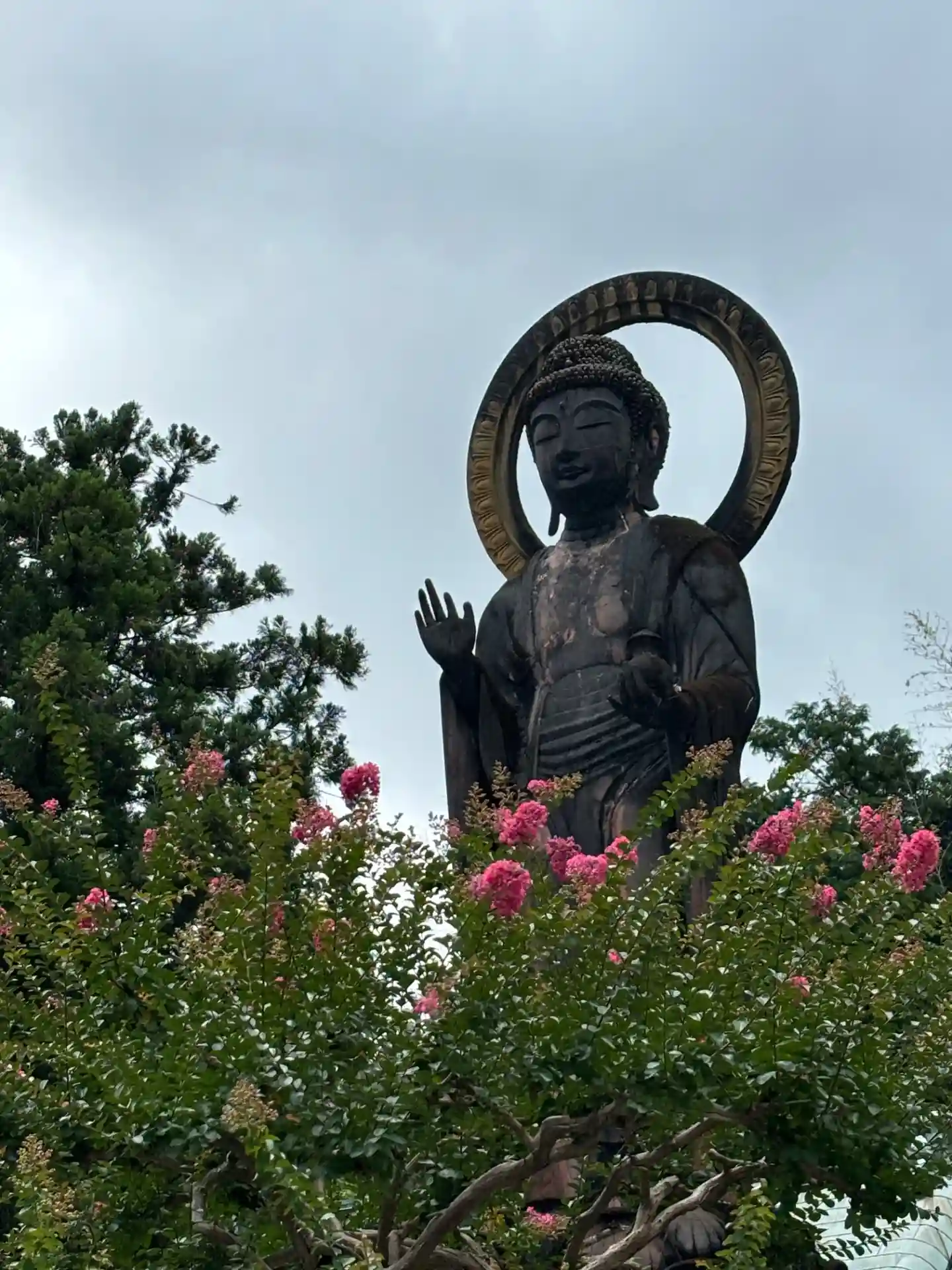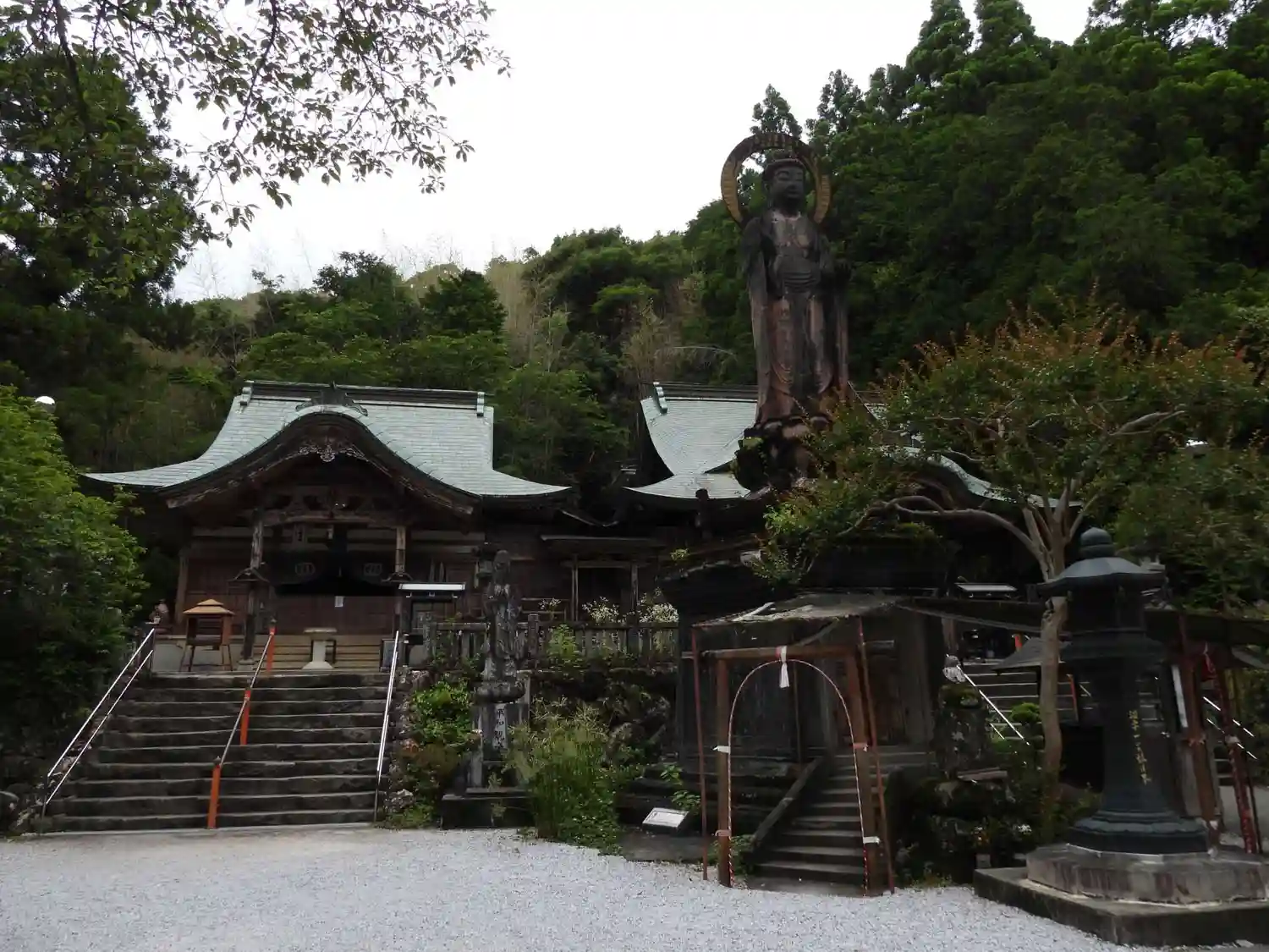 境内に入るとお薬師様の大きな立像の背後に左右対…