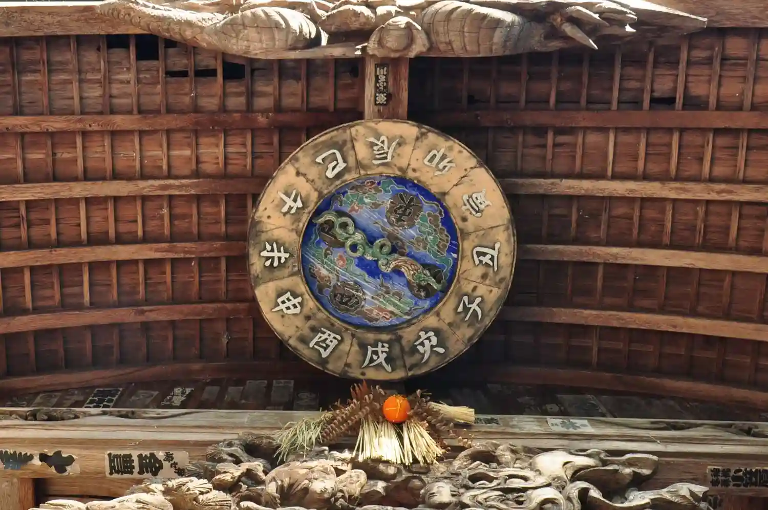 本堂の軒下には十二支による方角盤がある。