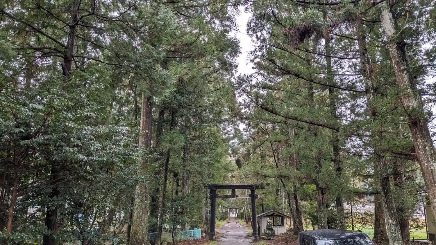 本殿と本殿裏の「燈明杉」