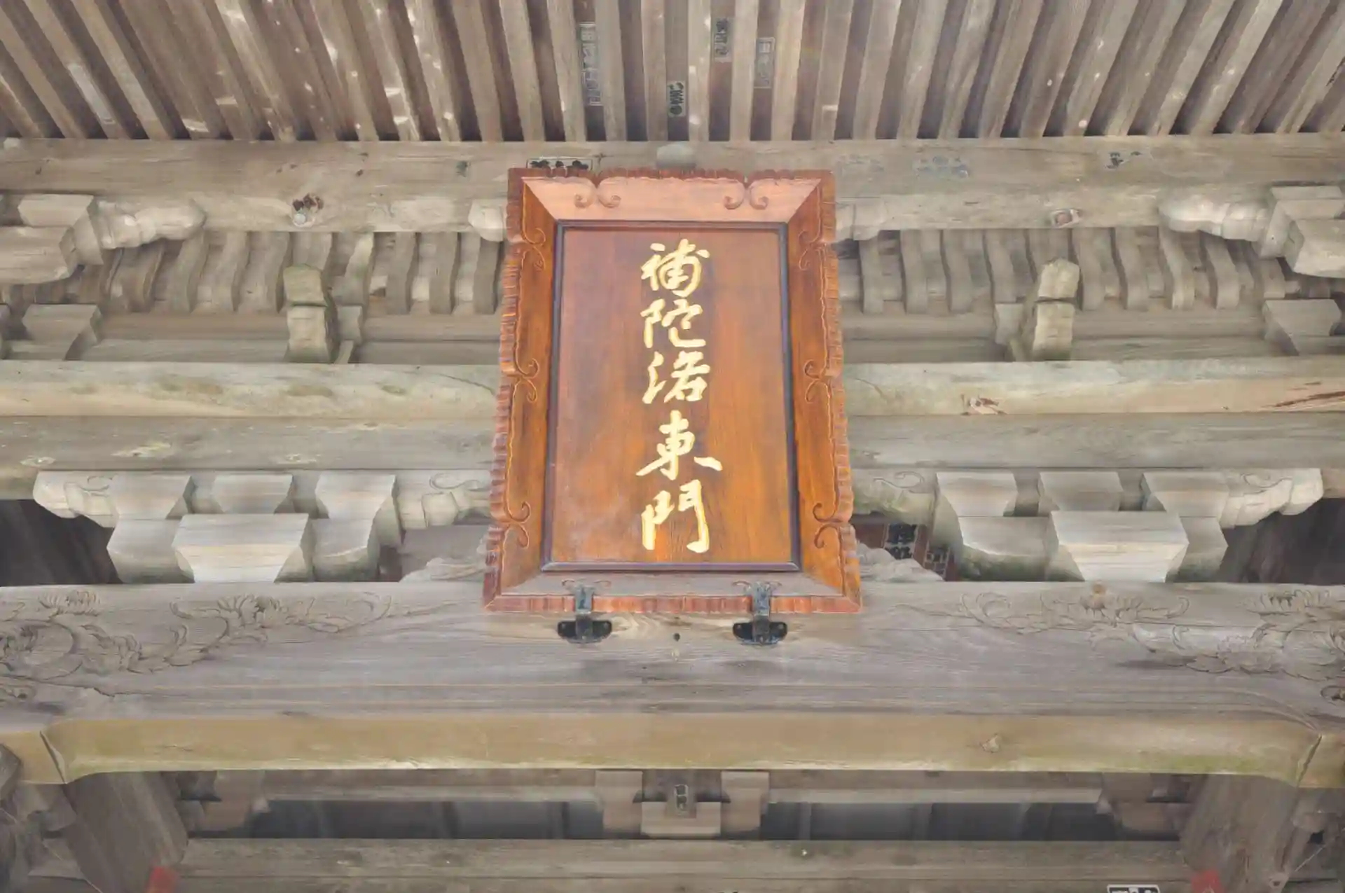 新しくなった嵯峨天皇の勅額「補陀落東門」