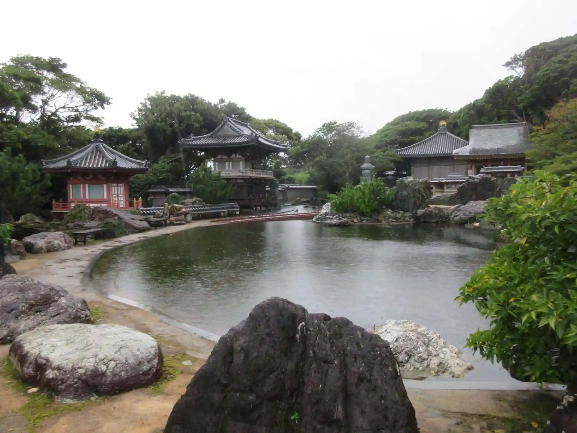 生憎の空模様です。中に入ると立派な境内の樹木も南国ムード満載です。次に来る機会があったら今度は天気の良い日に来てみたいです。