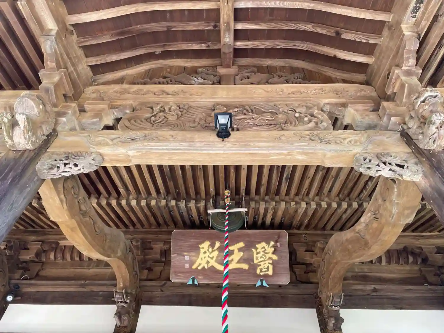 木組みが美しい 梁に龍の彫刻