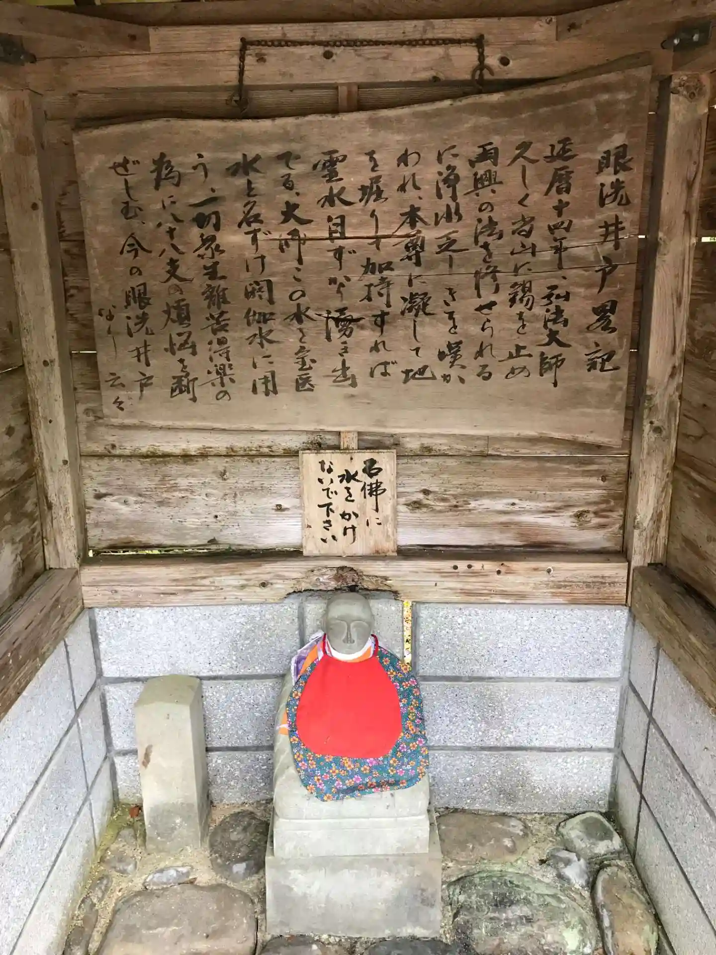 弘法大師が錫杖(しゃくじょう)で地面を突くと霊水が湧き出たとされ、今でも「眼洗いの井戸」として境内に残っている。現在、社会状況によりお参りのみ。