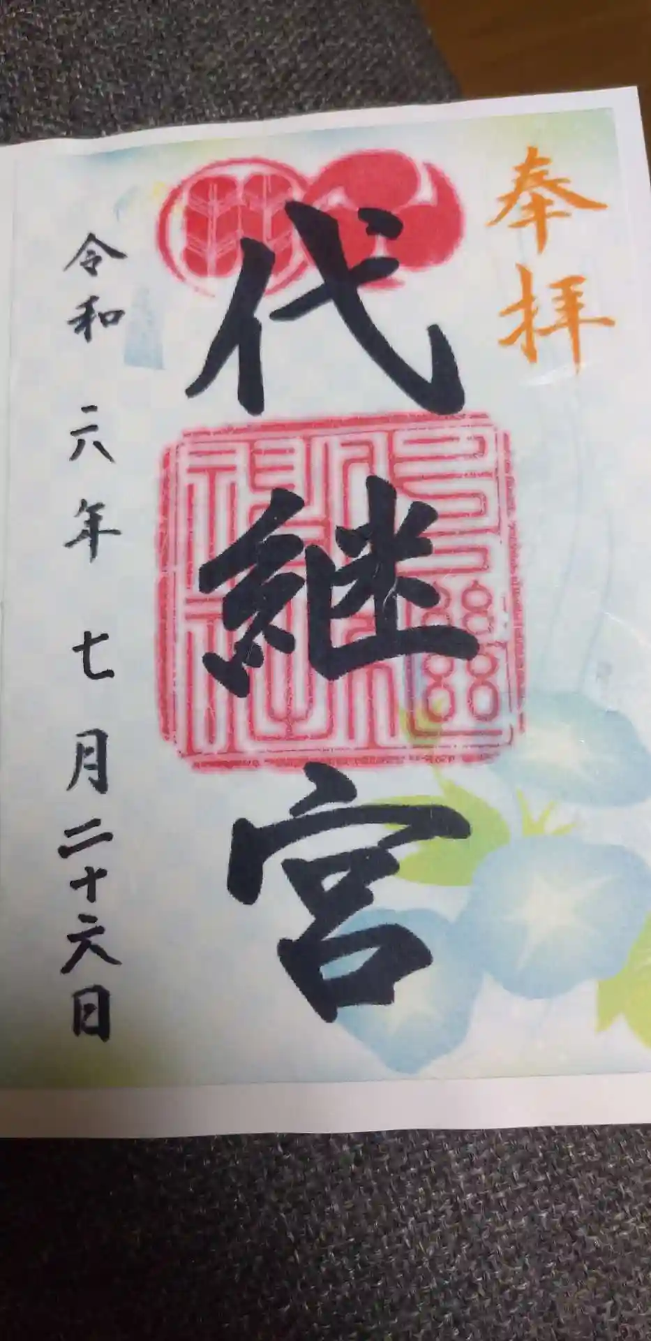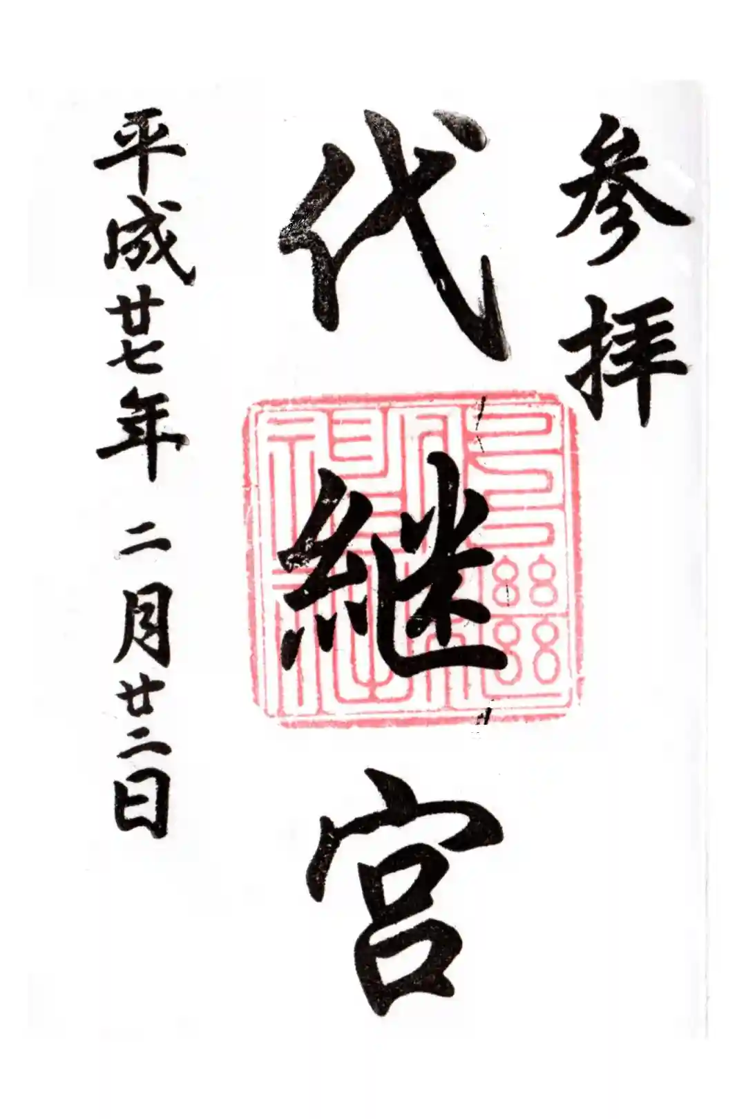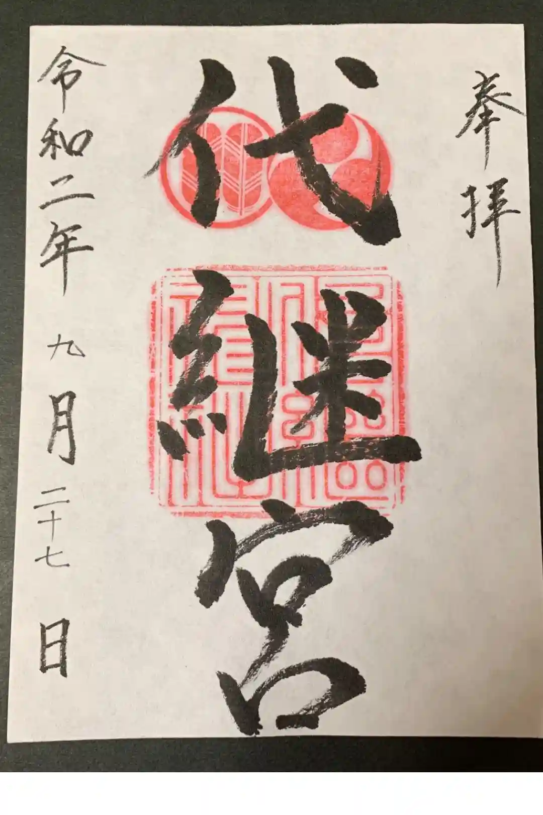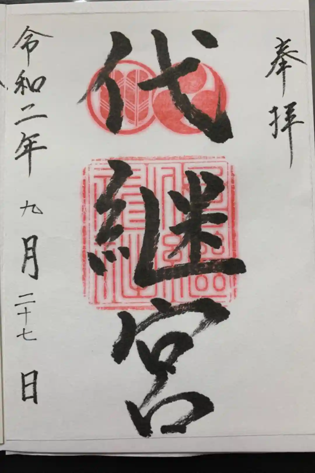 書き置きの御朱印です。