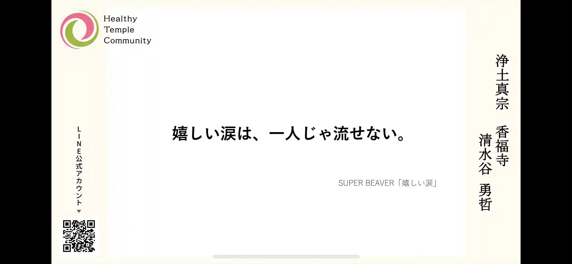 #ヘルシーテンプルオンライン #本日の言葉はSUPER BEAVER #本日の質問は「誰かの歓びが自分の歓びになる瞬間は?」