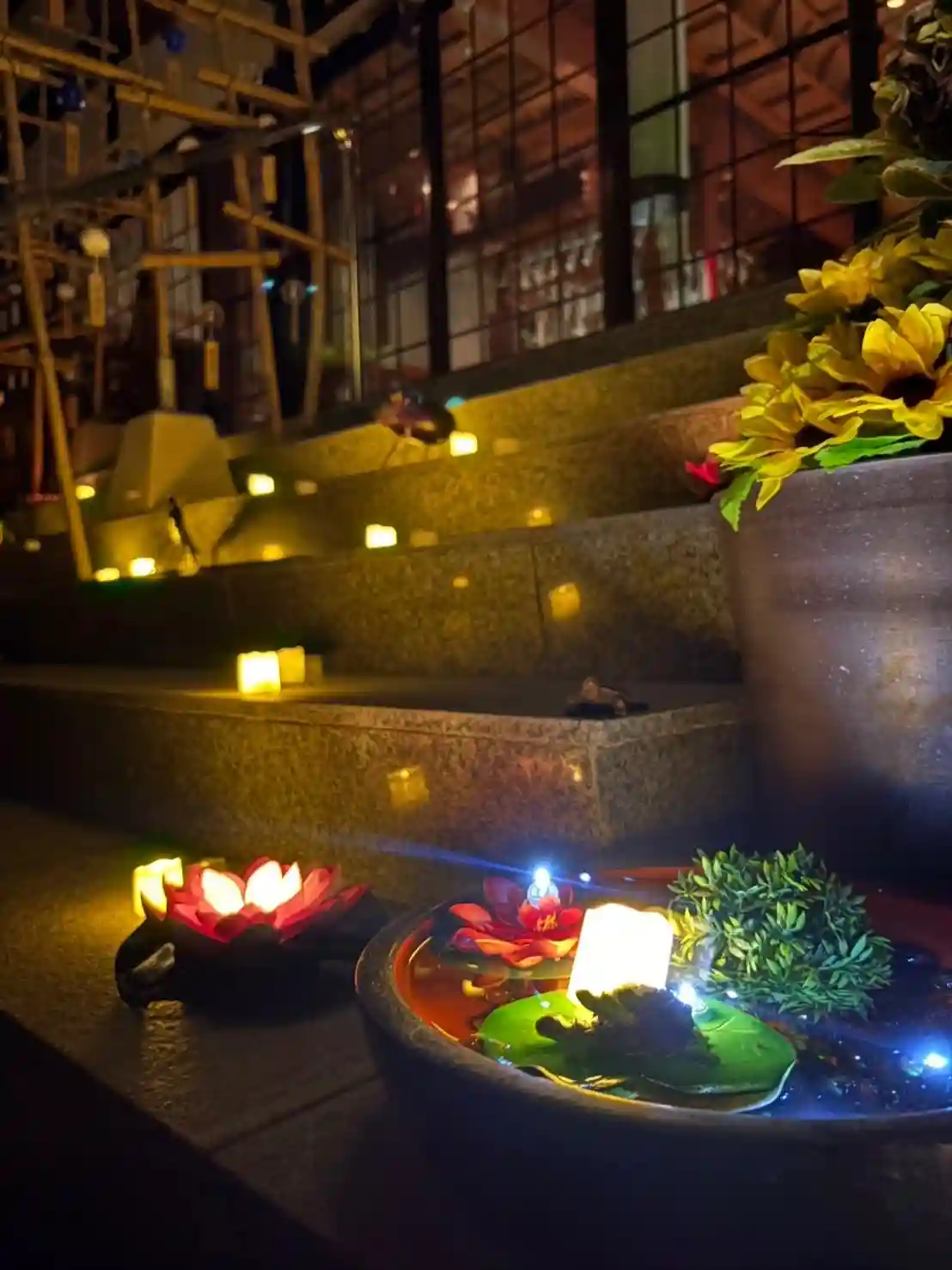 どうぞ夜風に吹かれながら、光と祈りのひとときをお過ごしください。