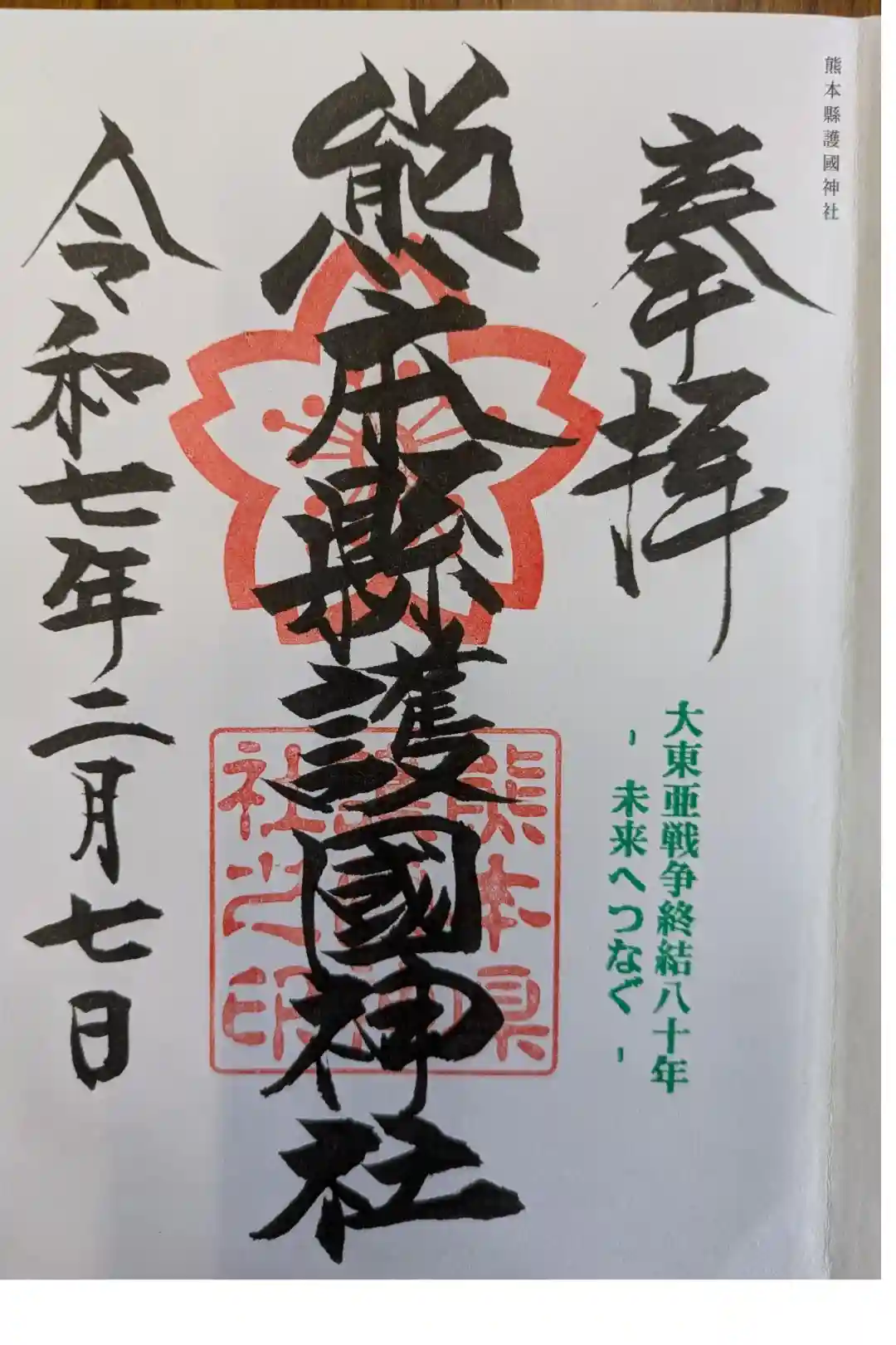 熊本縣護國神社の御朱印・御朱印帳