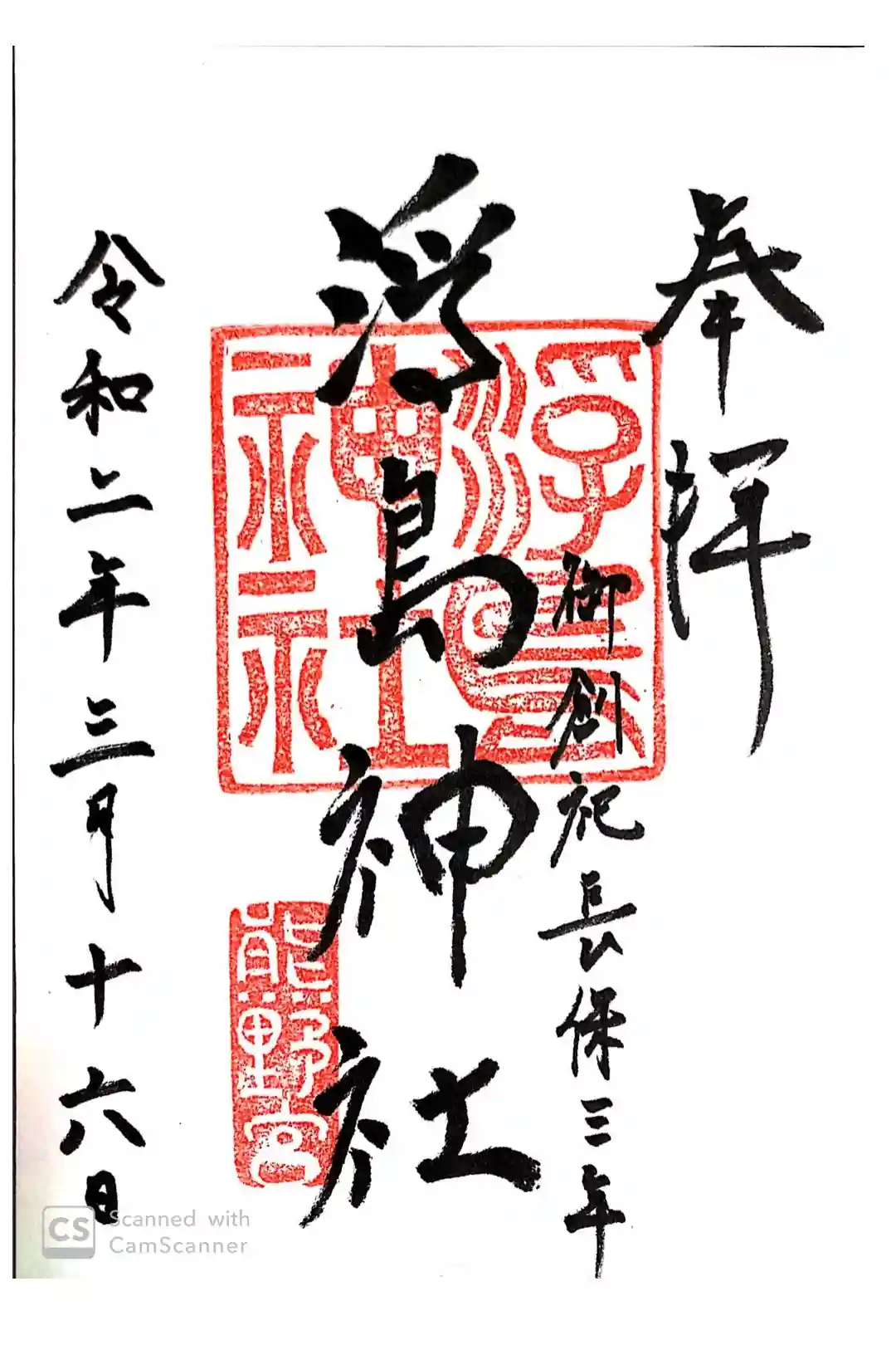 島さんから御朱印と資格試験の御守り頂きました。