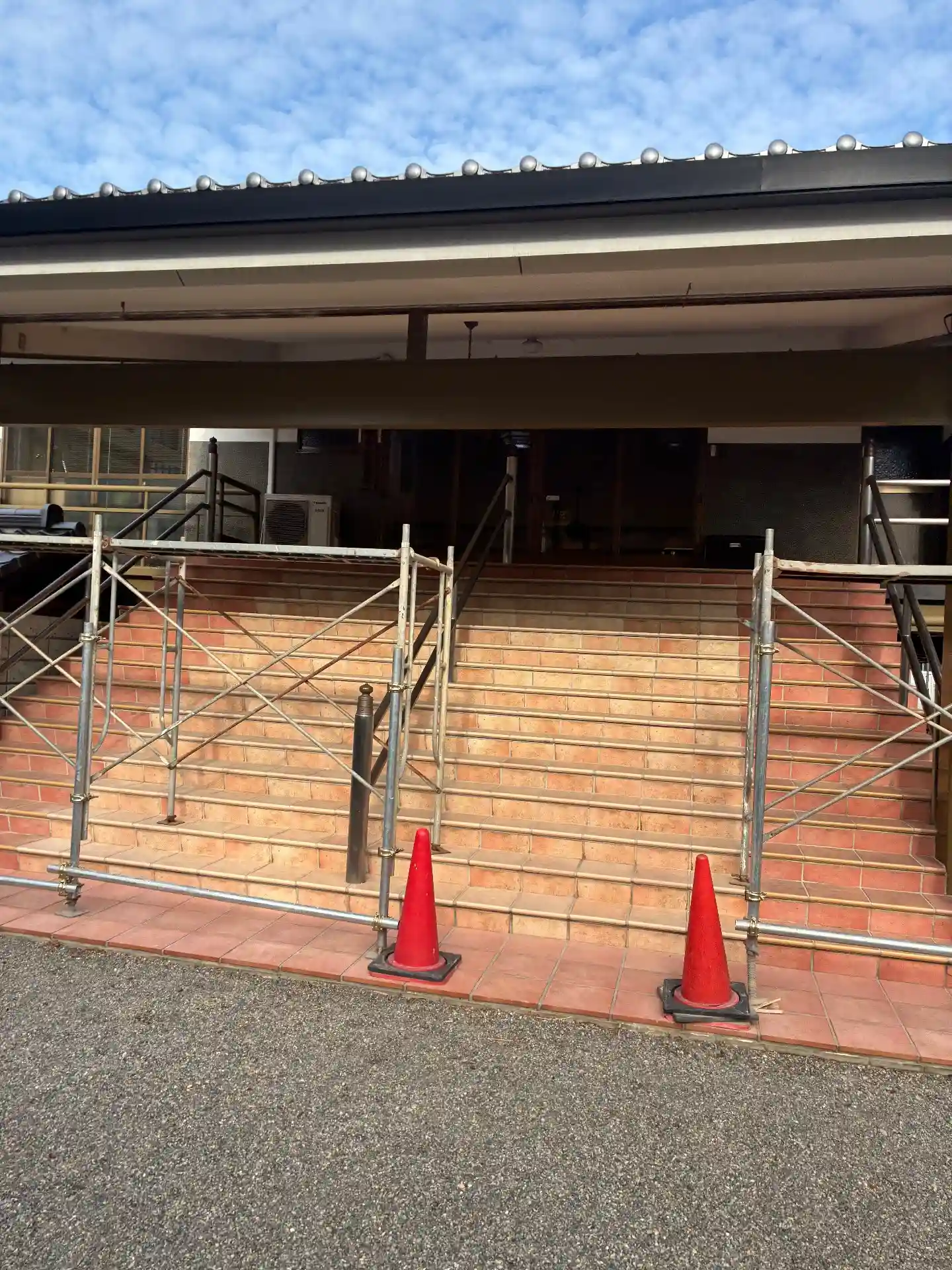 本堂に足場をかけてる最中?