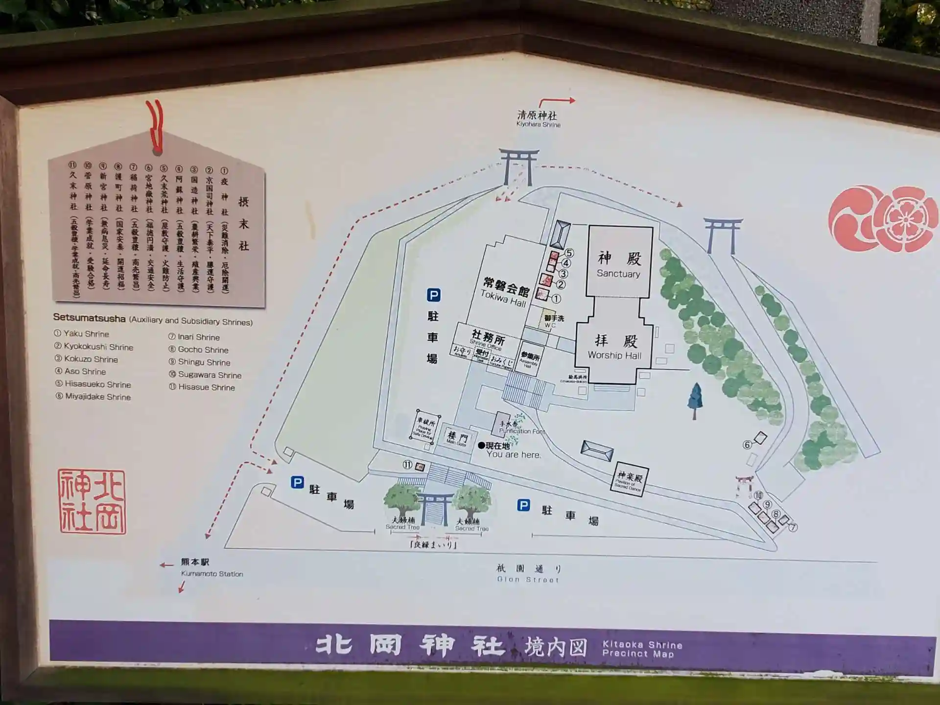 九州新幹線「熊本」駅から北東方向へ徒歩約5分ほどのところに鎮座。