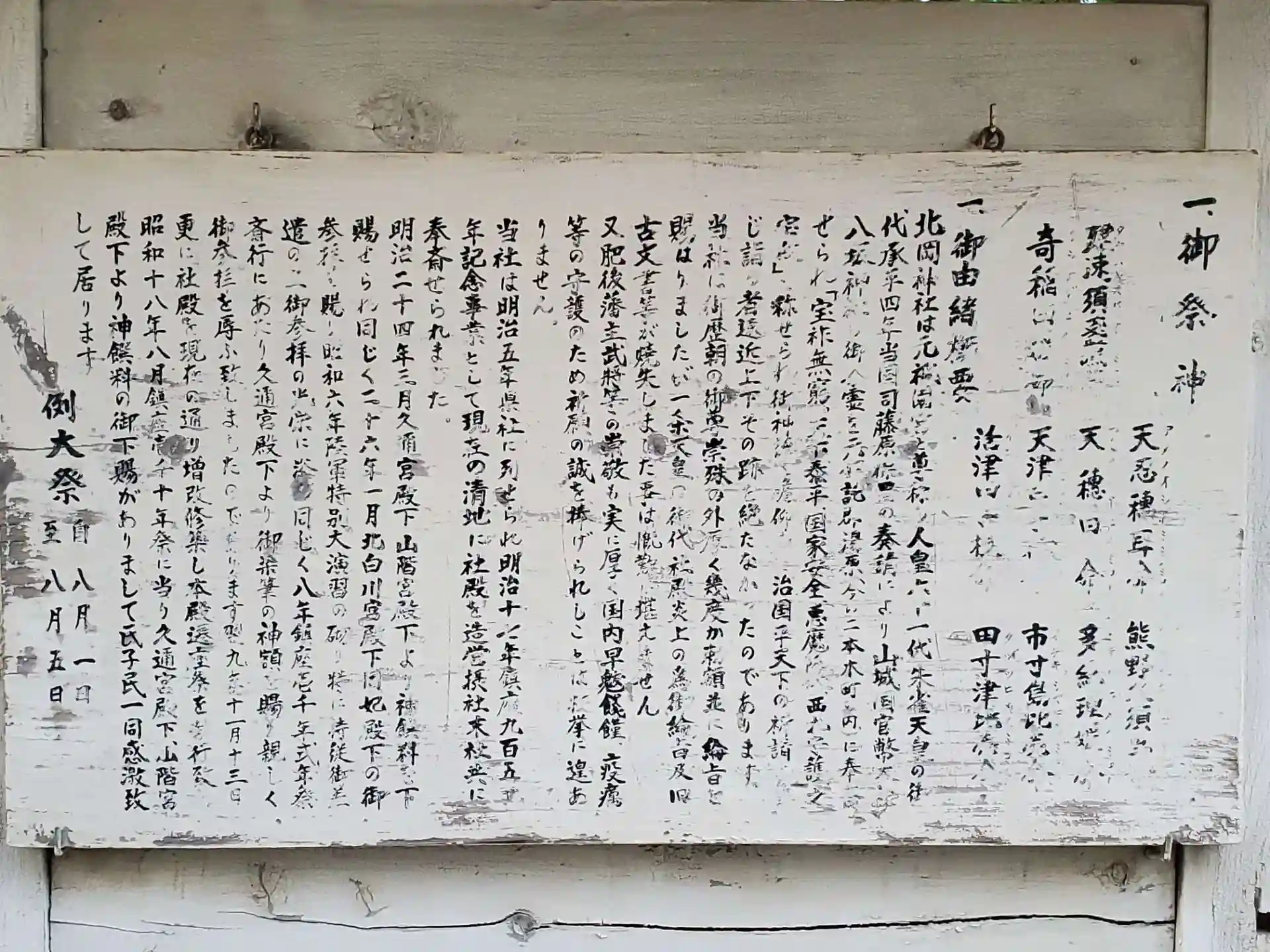 昭和8年 (1933年) 4月には御鎮座一千年を向かえ、久邇宮殿下より直筆の御神額を賜る。