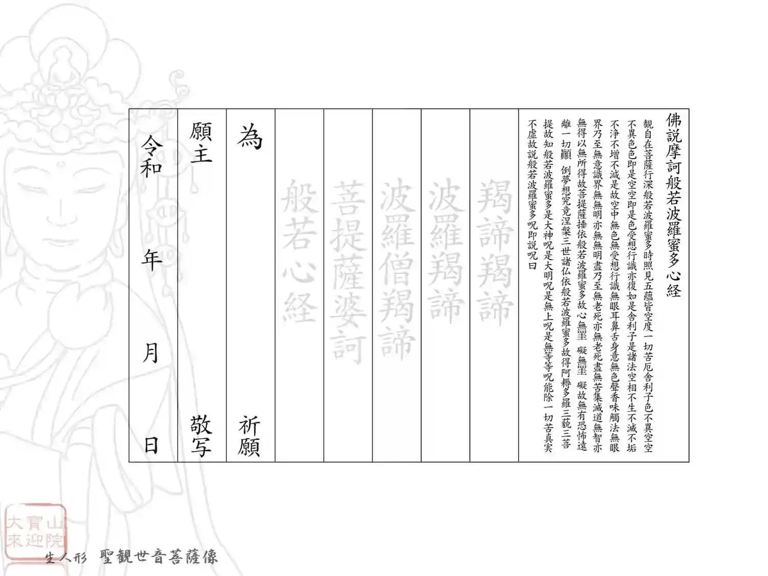 般若心経と聖観世音菩薩像🙏