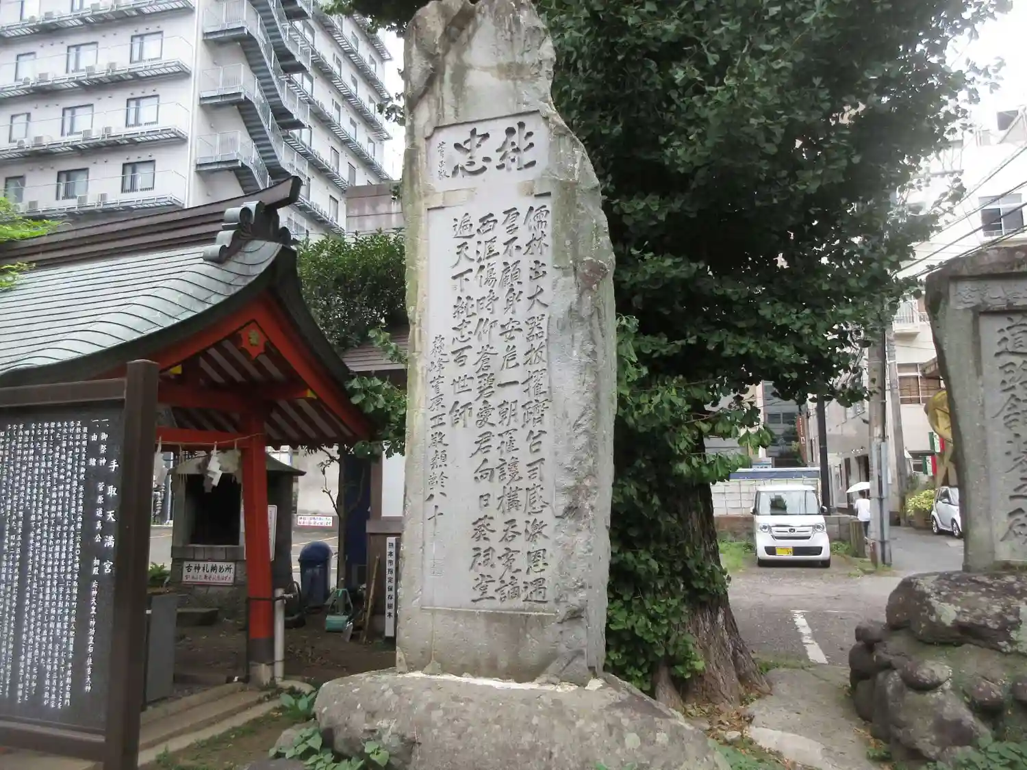 街の真ん中にある天満宮です。道路から鳥居が見えるので、そこから100m程奥に入ったところにあります…