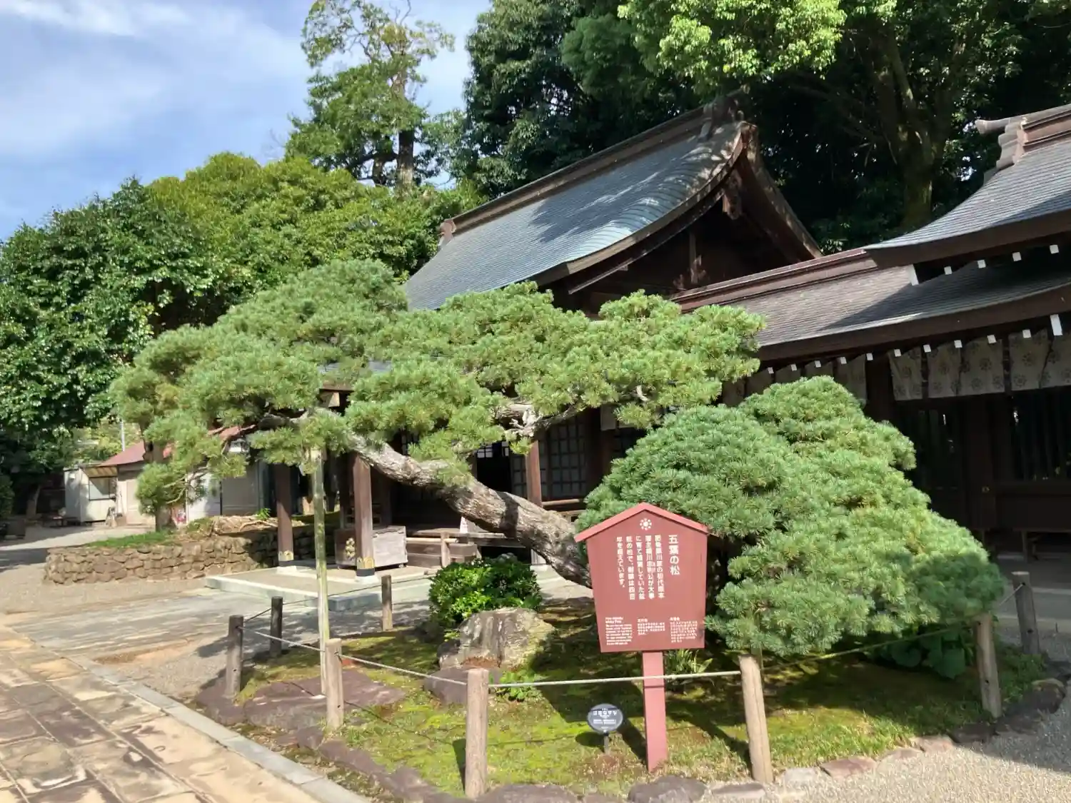 五葉の松と奥は神楽殿。