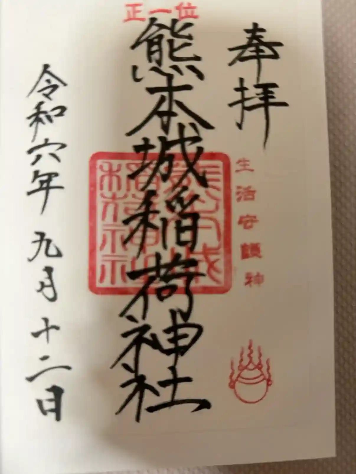 熊本城稲荷神社の御朱印・御朱印帳