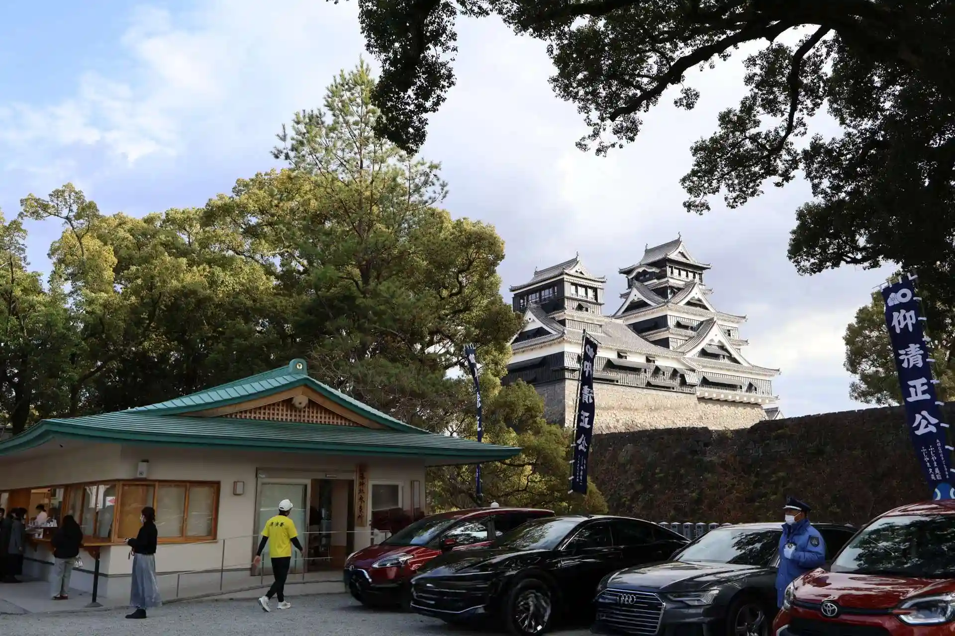 境内から熊本城が見えるという事でしたが綺麗に見えました。ただ熊本地震の爪痕はまだまだ残っていますね。
