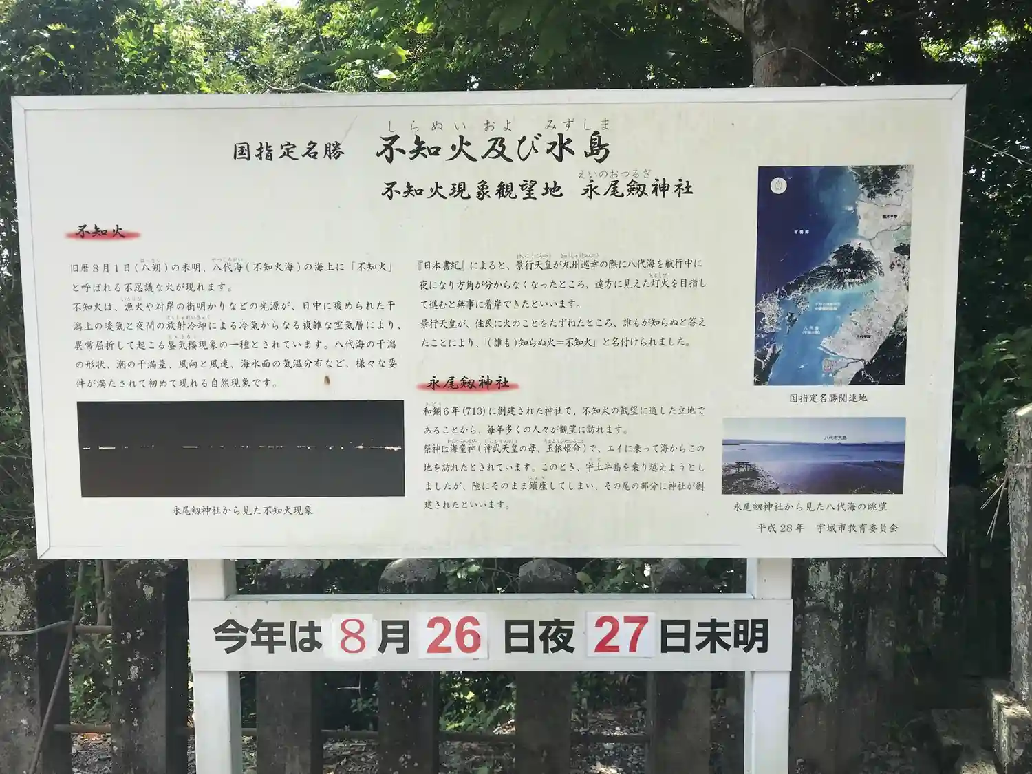 近くの永尾バス停には、「不知火」の案内看板があります。