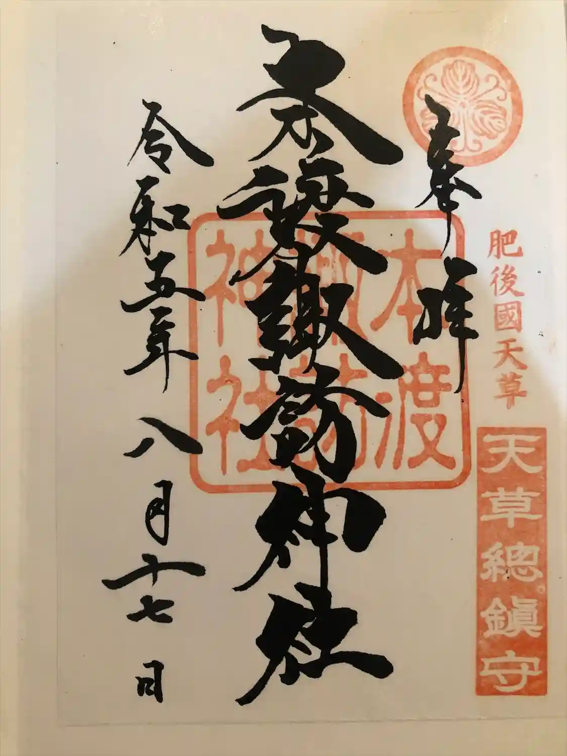 昨年ゴールデンウィークに九州に行き、令和元年の記念に頂いた御朱印です。