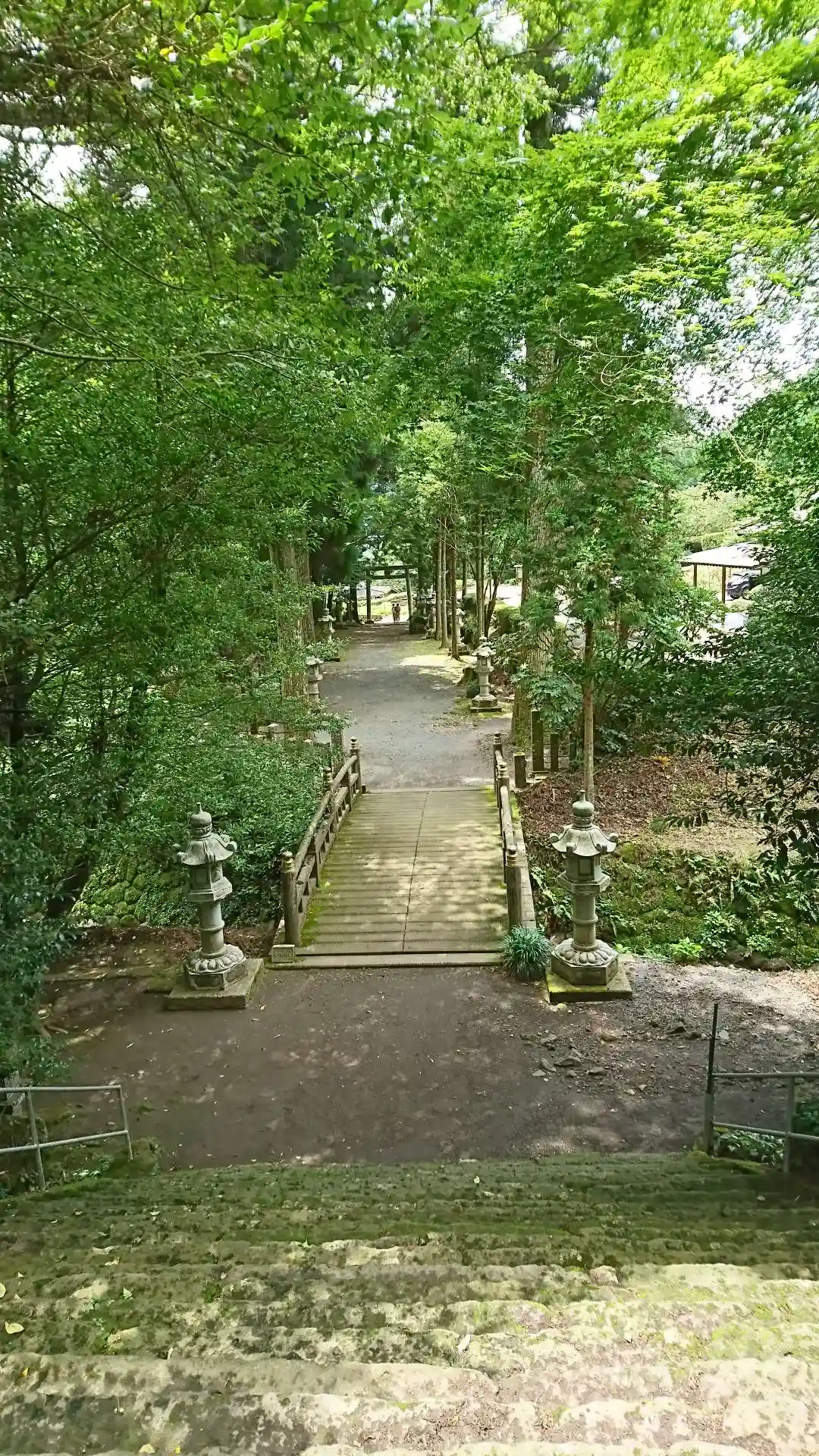 石段からみた神橋と参道