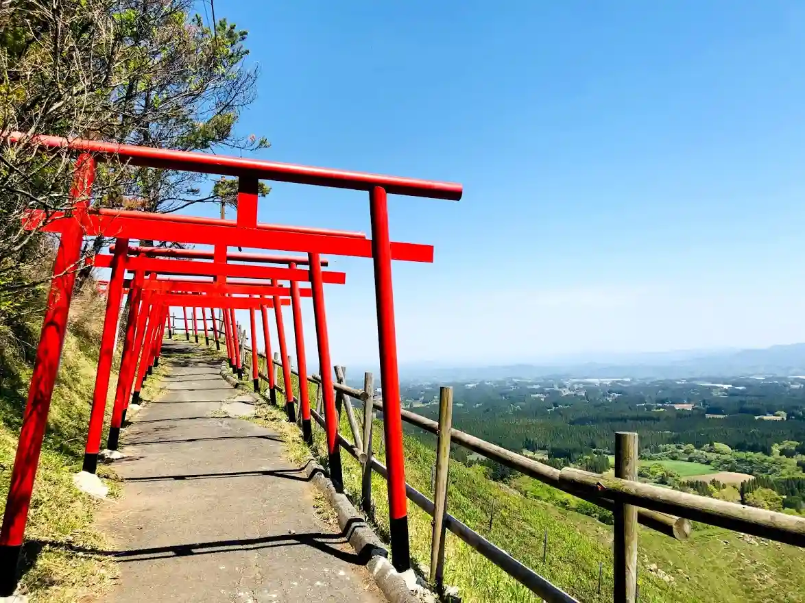 阿蘇山をバックに鎮座。
