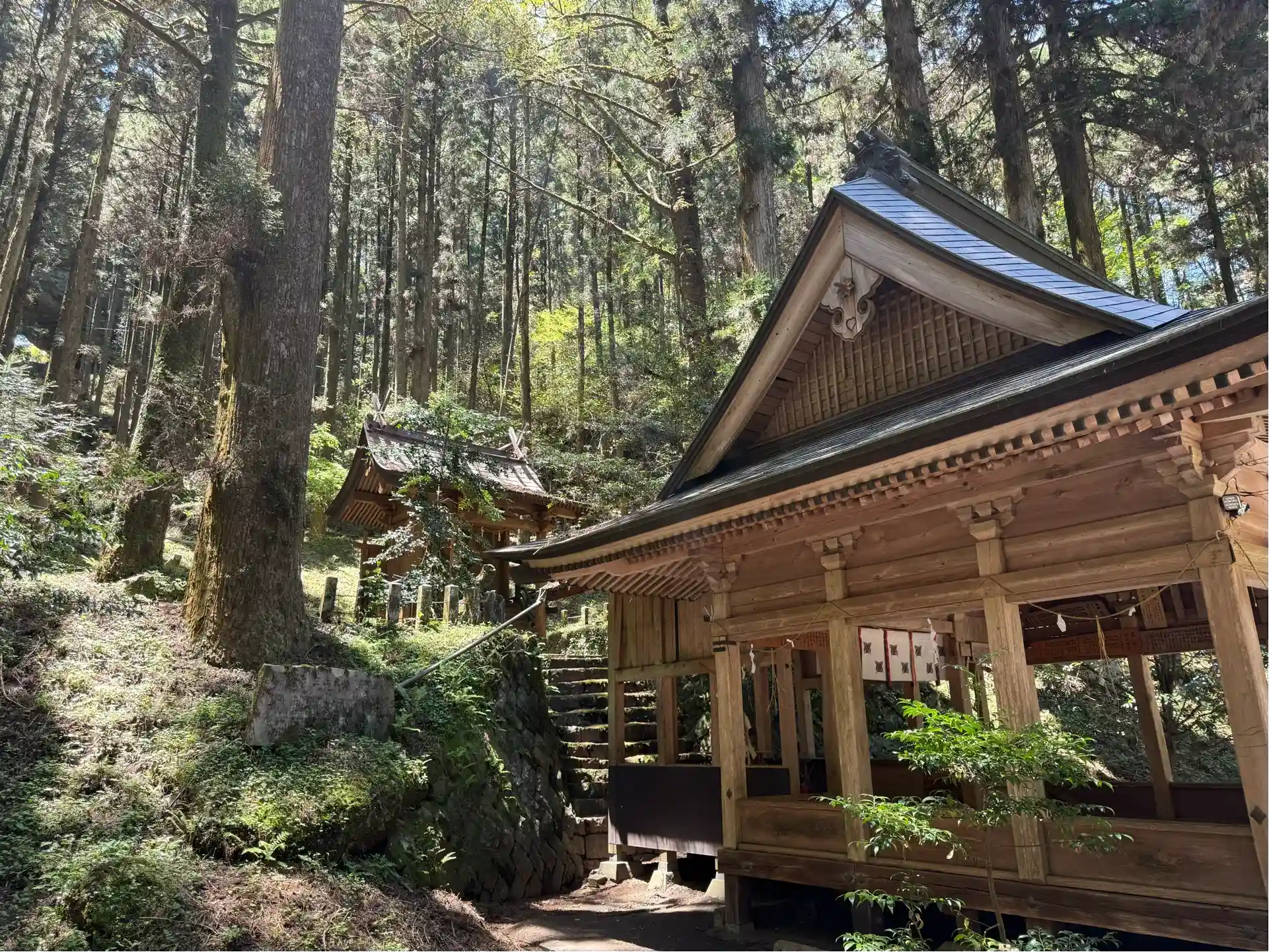 参拝させて頂きました。午前中に行ったからか思ってたよりも明るい雰囲気。御朱印は高森駅前の高森観光推進機構で授与して頂けました。本殿後方を登ったところに穿戸岩(うげといわ)と呼ばれる大風穴があってこちらの御朱印もあったので頂きました。参道脇の常夜灯は昭和50年代前後など比較的新しいもの多し。
