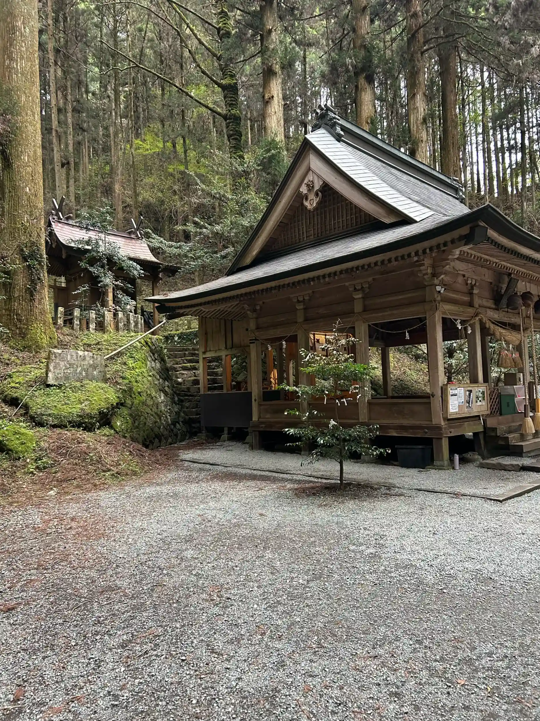 参道には苔が生えた灯籠が本殿付近迄並んでいて本殿で参拝またその奥に神穿戸岩が有り異世界へ迷い込んだような神秘的な雰囲気の神社でした。御朱印は神社⛩️の駐車場でも販売されていますが不在の時は高森駅のすぐの高森町観光交流センターにて書き置きが授与されていました
