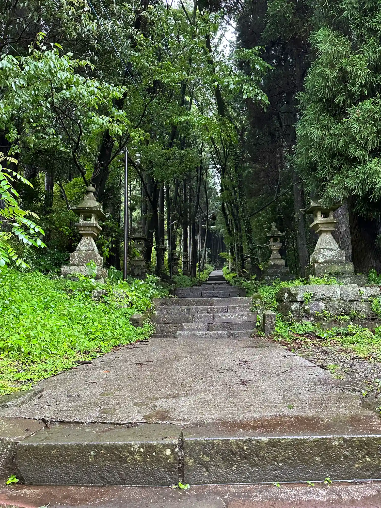 拝殿より石段を見下ろす