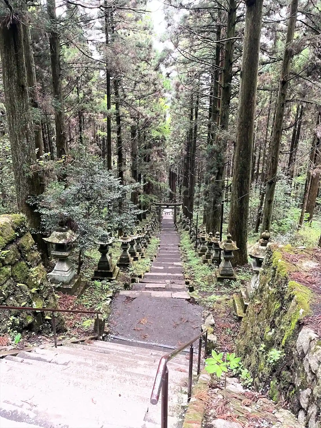 長く急な石段の先の山の中に鎮座されてました。