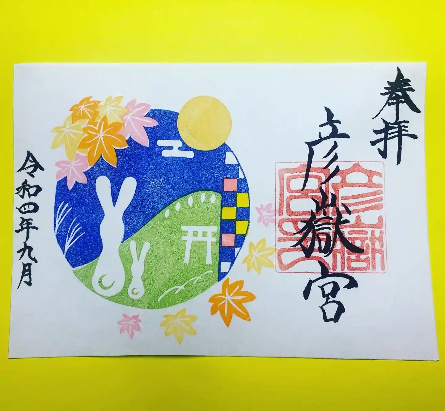 9月1日(木)〜10月31日(月)までの2ヶ月間、見開きの御朱印『お月見うさぎを頒布します😀