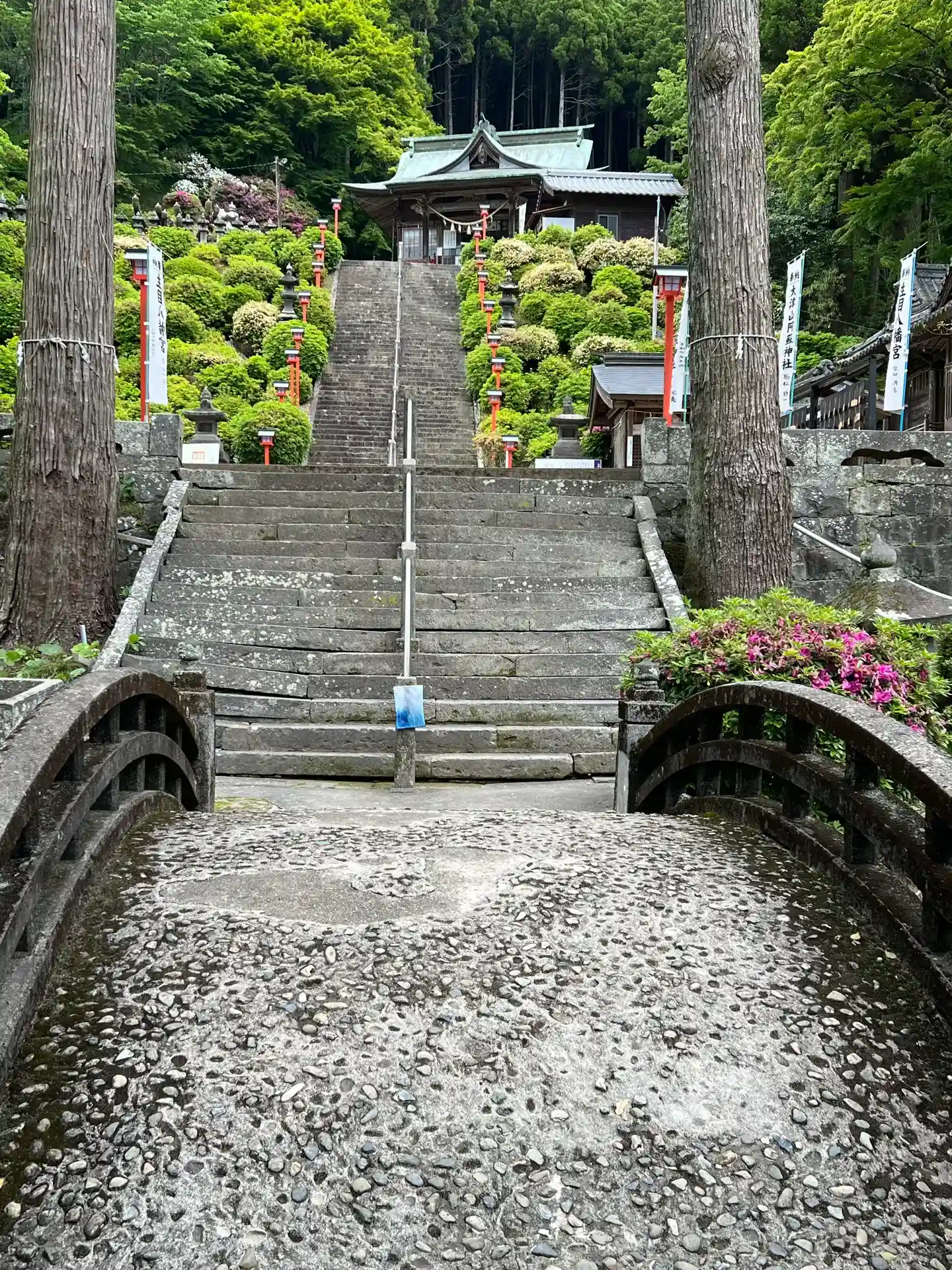 下から参拝すると108段の階段があります。車で途中まで