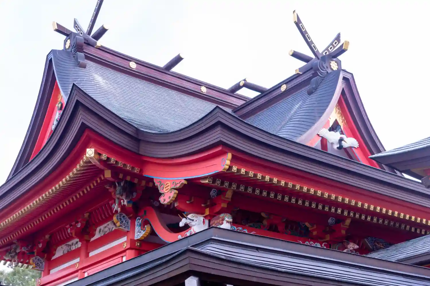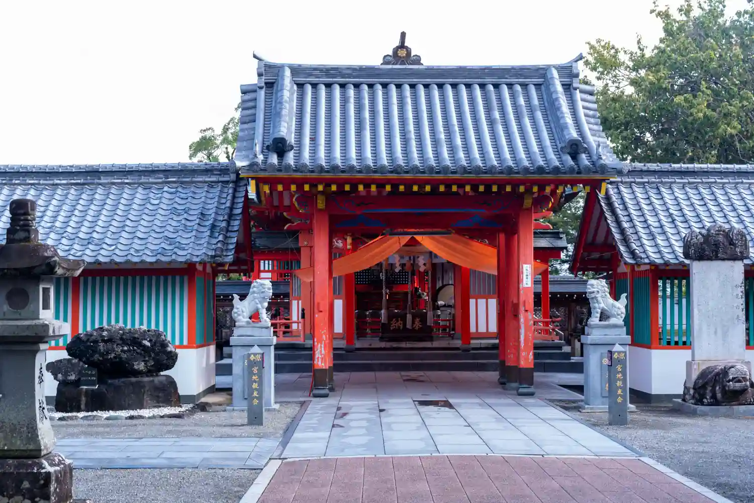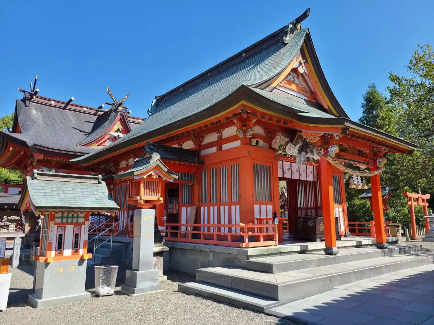 鮮やかな朱色の社…