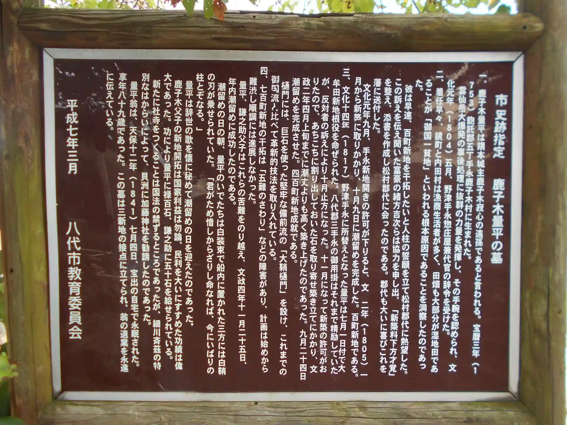 この辺りは江戸時代の文政期に造られた干拓地で、その干拓事業に貢献した鹿子木量平という人物をお祀りしています。