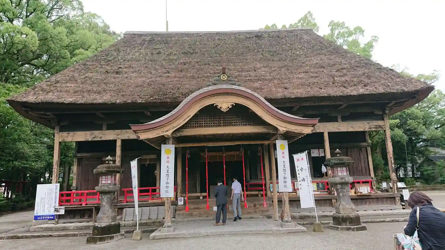 茅葺屋根が印象的で美しい神社である。