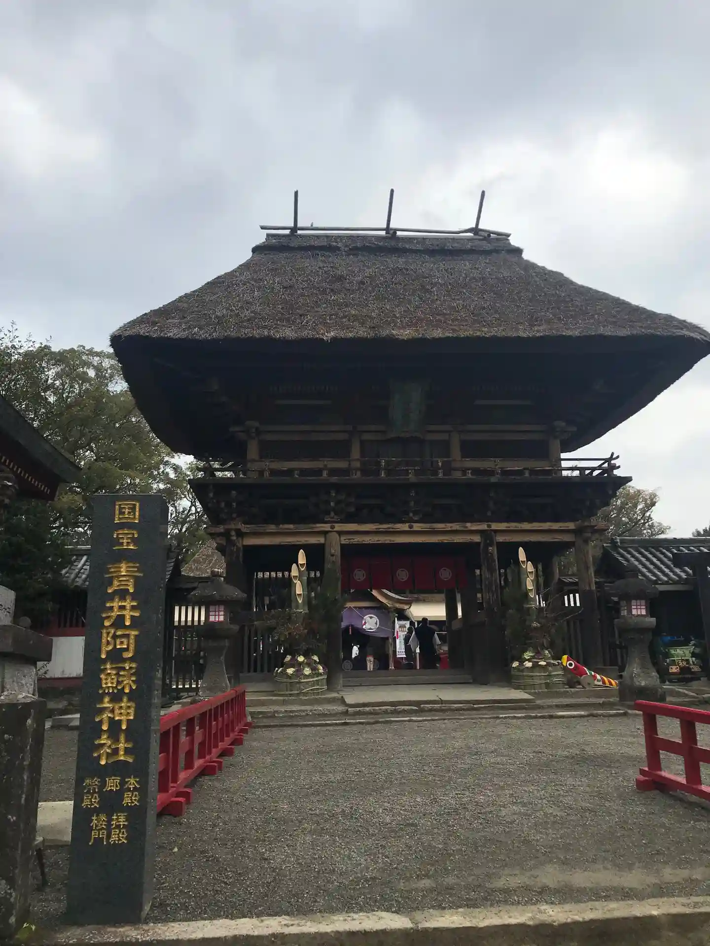 阿蘇神社の御祭神十二神のうち、三神の御分霊が祀られているそうです。本殿、廊、幣殿、拝殿、楼門が国宝…