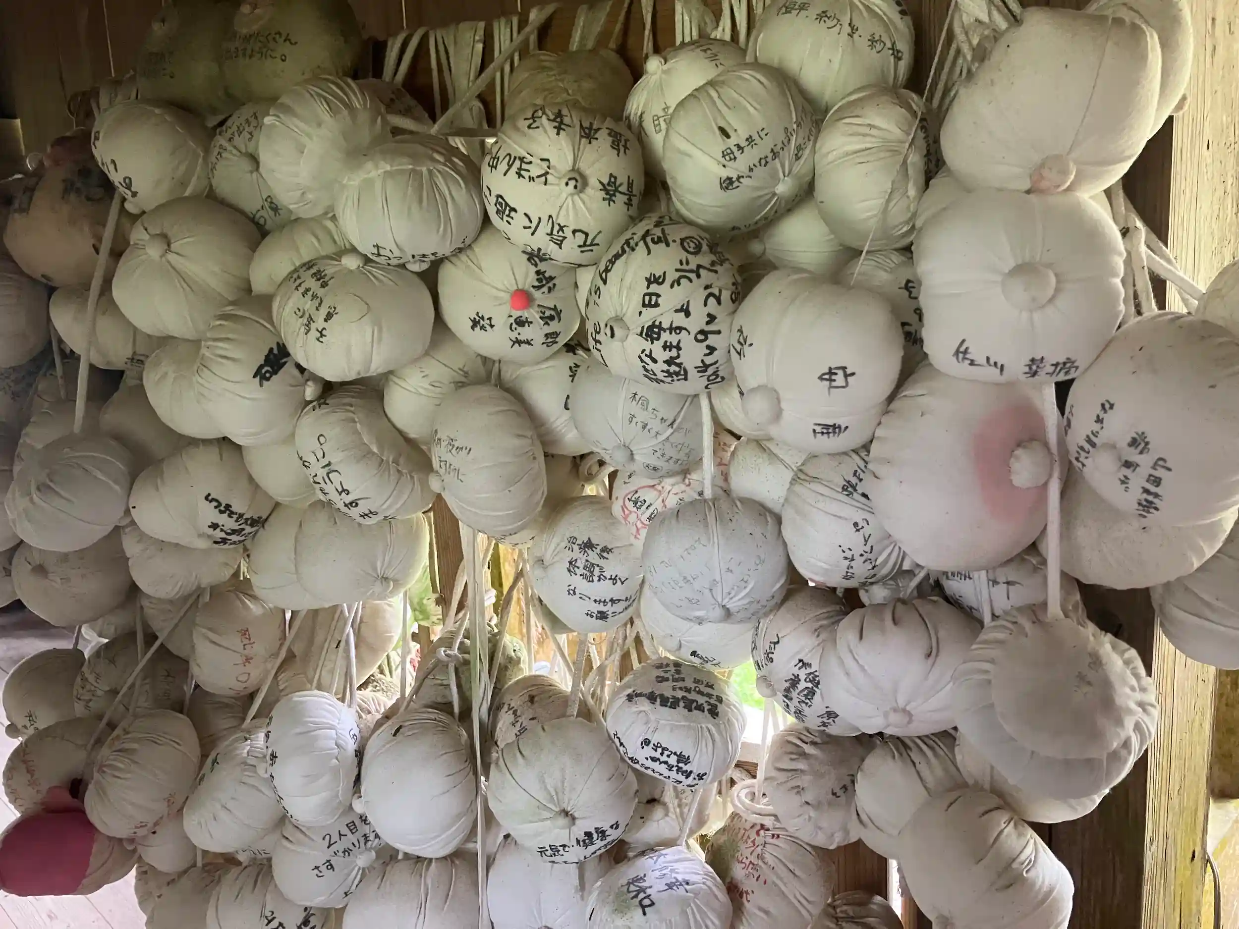 以来乳房をかたどったものを奉納すると乳の出が良くなると言われる。豊胸のご利益もあるとか。