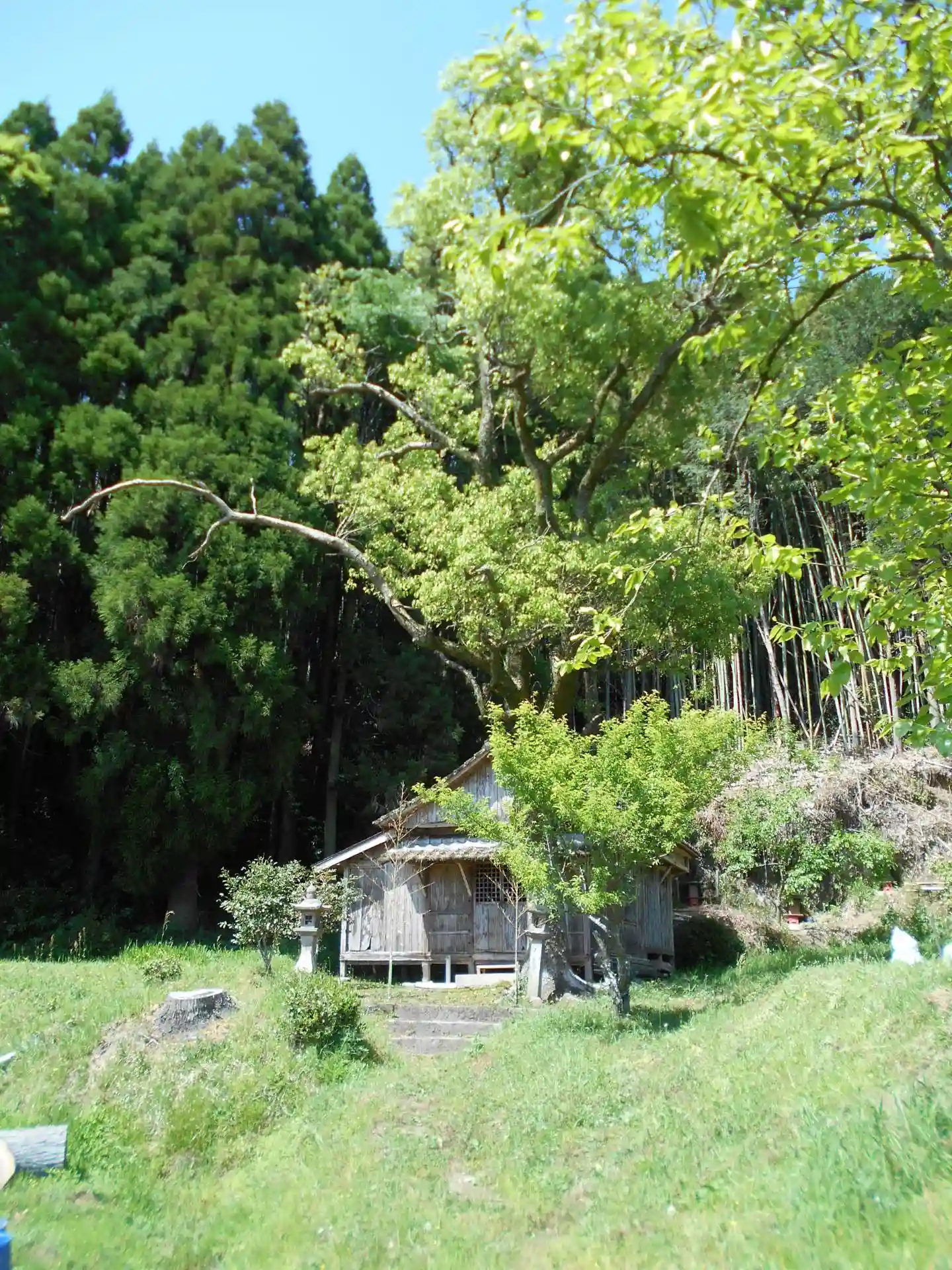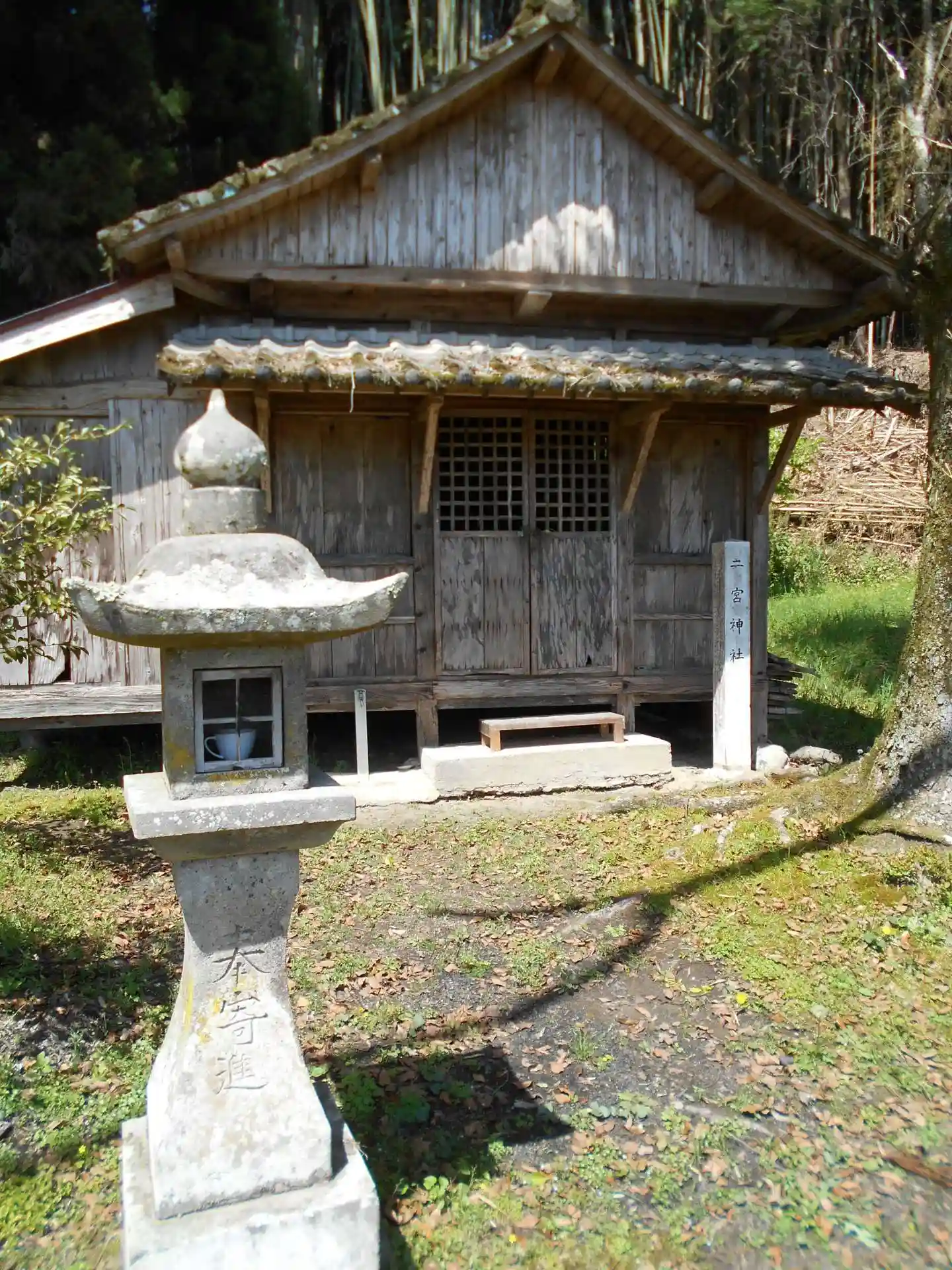 畜産農家などの農家が多い集落の中の狭い道を進んで行き、集落の外れからは、田んぼのあぜ道同然の参道を歩いて行かないといけません。