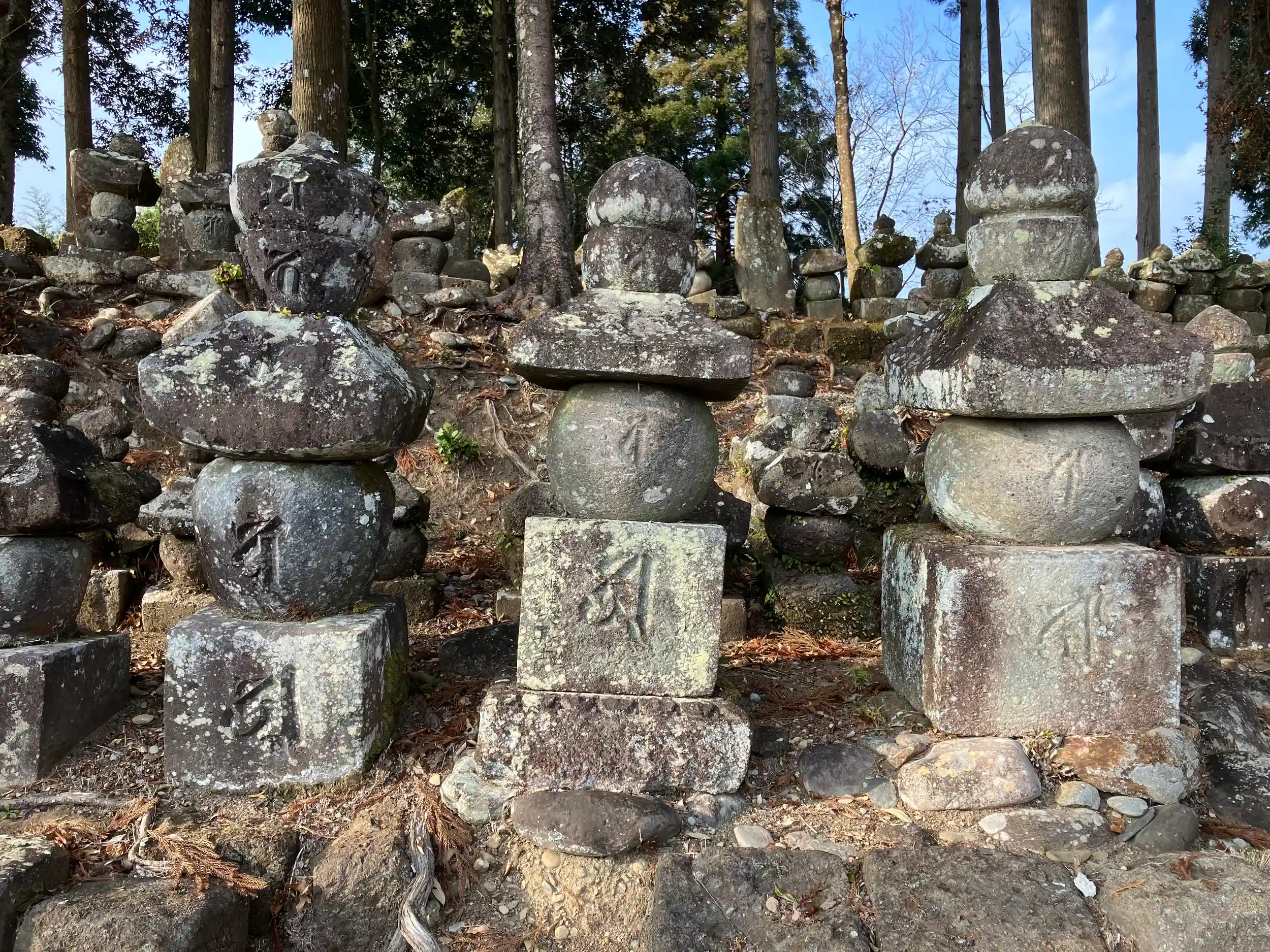 阿弥陀堂裏には相良氏一族や青蓮寺住職の墓石である古塔碑群がある。