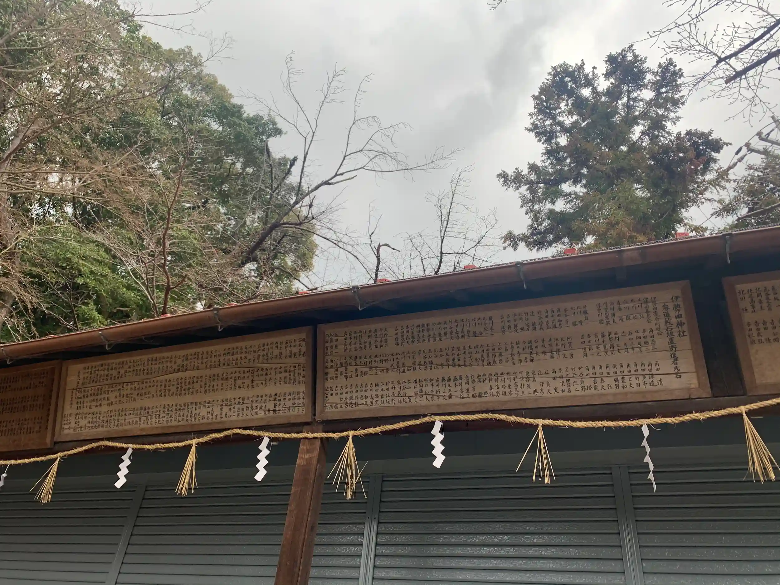 社殿にたどり着くと、寄進者の名前がびっしりと看板に書かれて掲げられています。