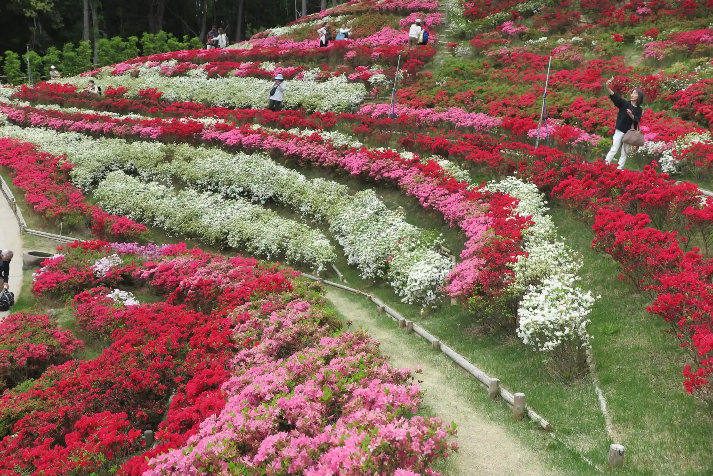 宇治の平等院参拝の後、徒歩30分程で到着。久留米ツツジが満開でツツジ園が賑わっていました。
