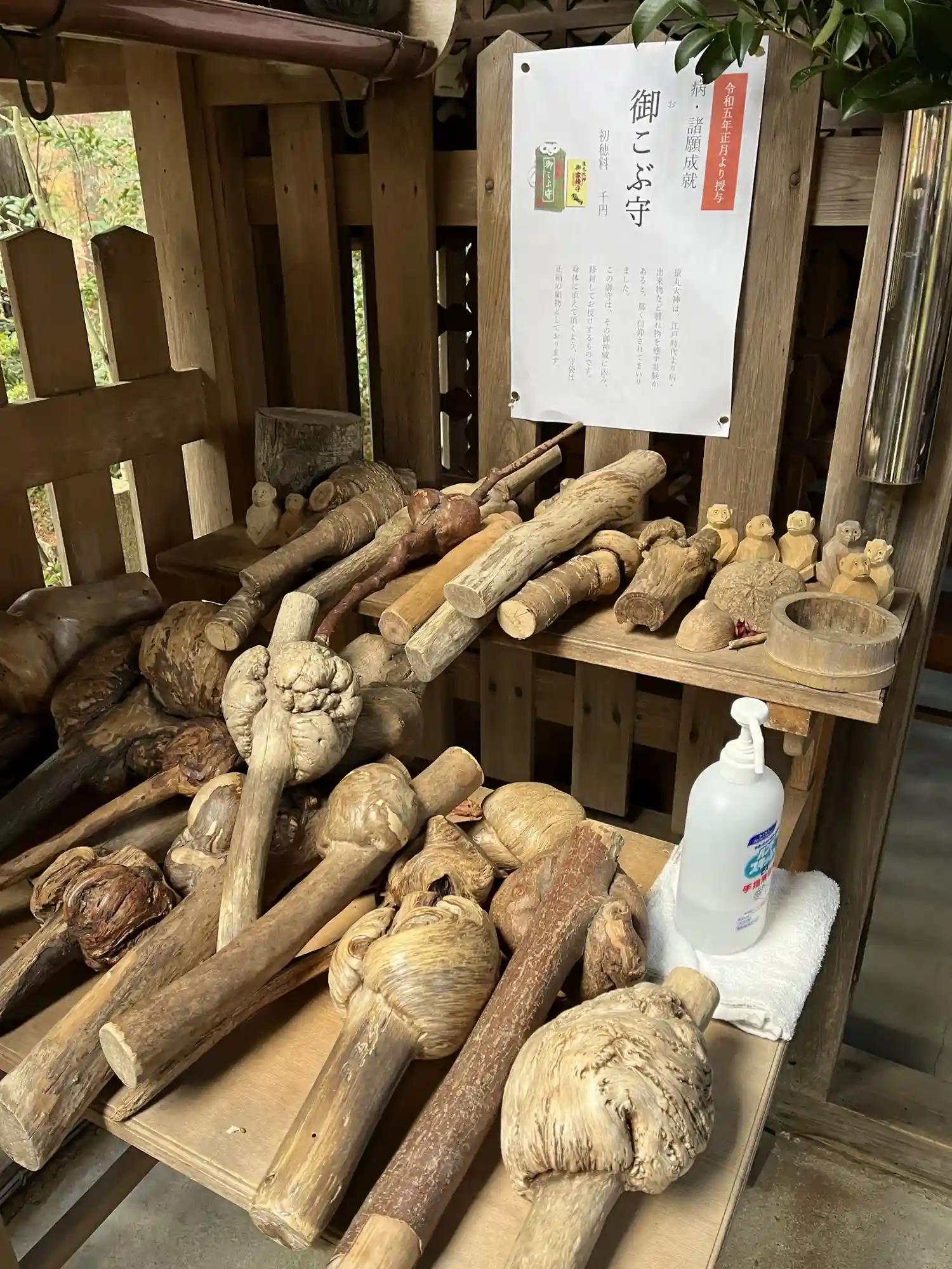 瘤とりの願掛けに木の瘤がたくさん奉納されてました。