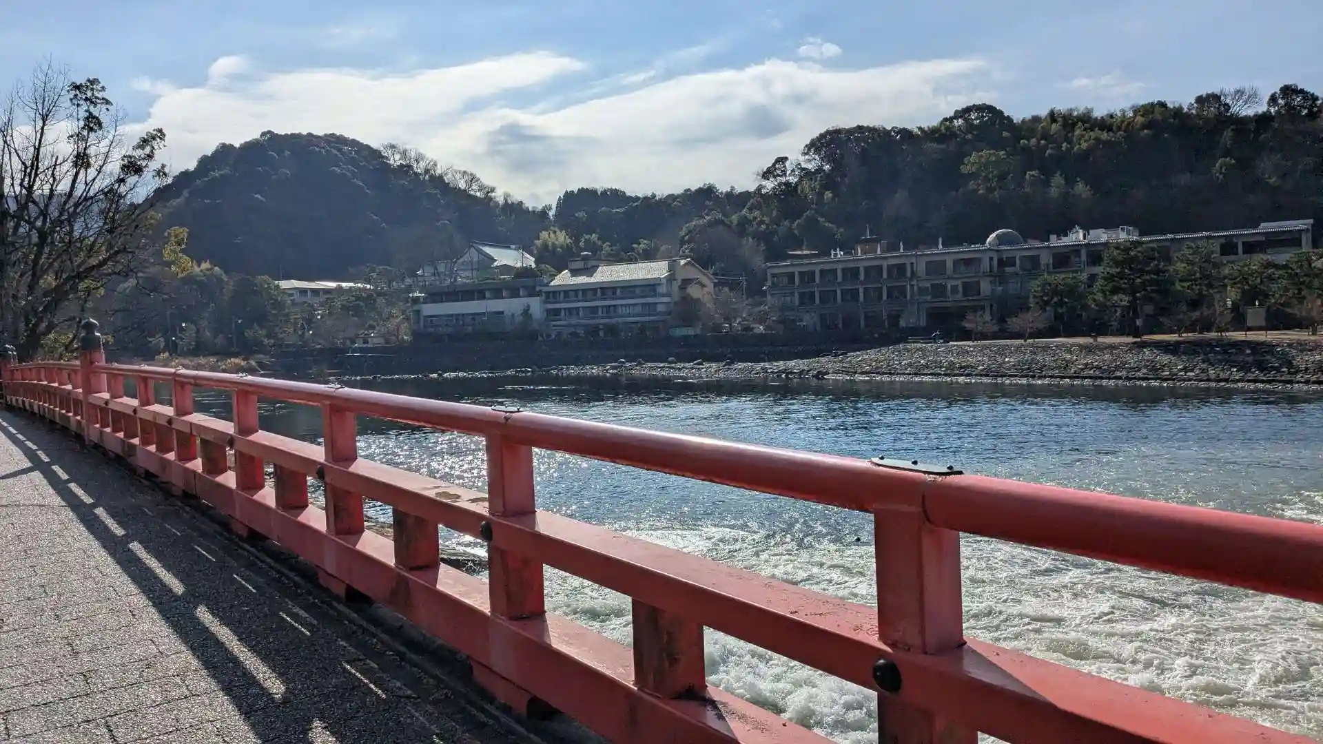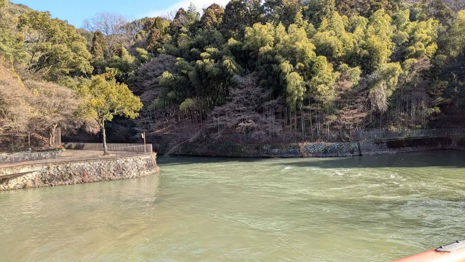 発電所の水と宇治川の合流点に架かる観流橋