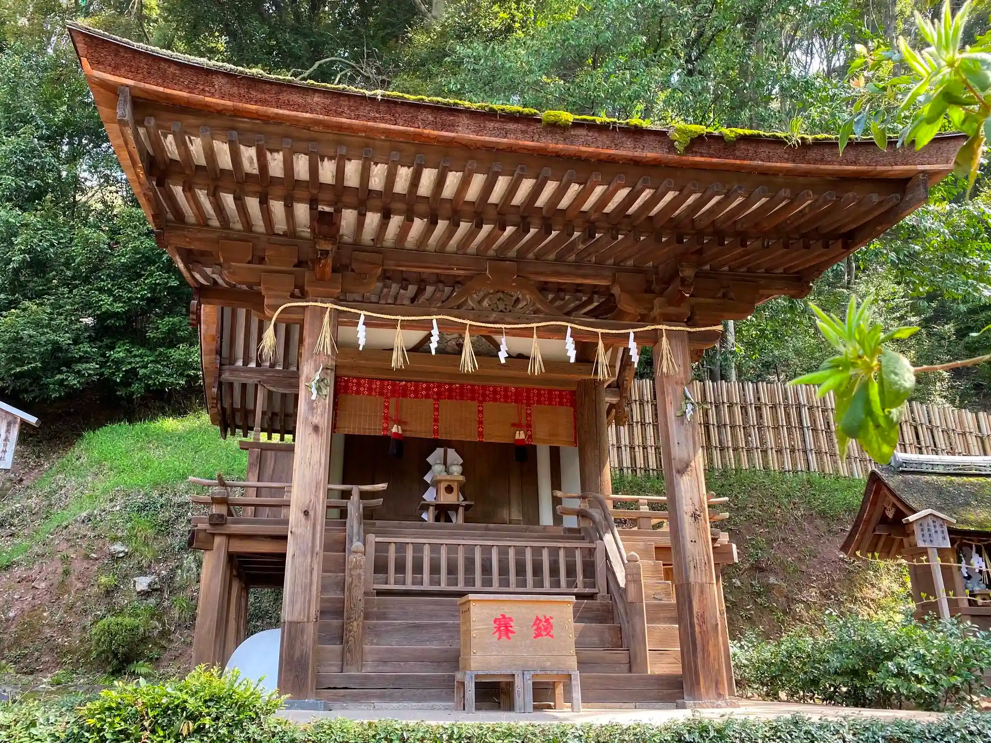 短い階段を上がった、一段高い場所にある<春日社>。鎌倉後期の造営とされる社殿は、一間社流造。国指定の重要文化財。