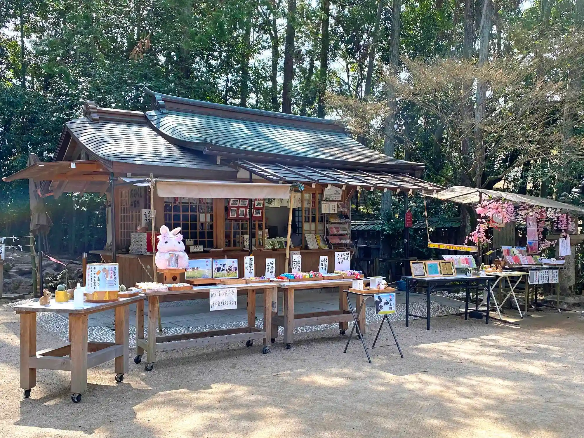 神門をくぐって、すぐ右手にある<授与所>。授与品が特設テーブルに並べられていて、なんとなく楽しい雰囲気。大人・子供関係なく好評。