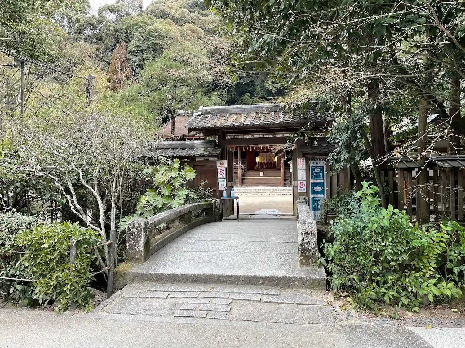 鳥居から100mほど進むと、神域入口が見える。