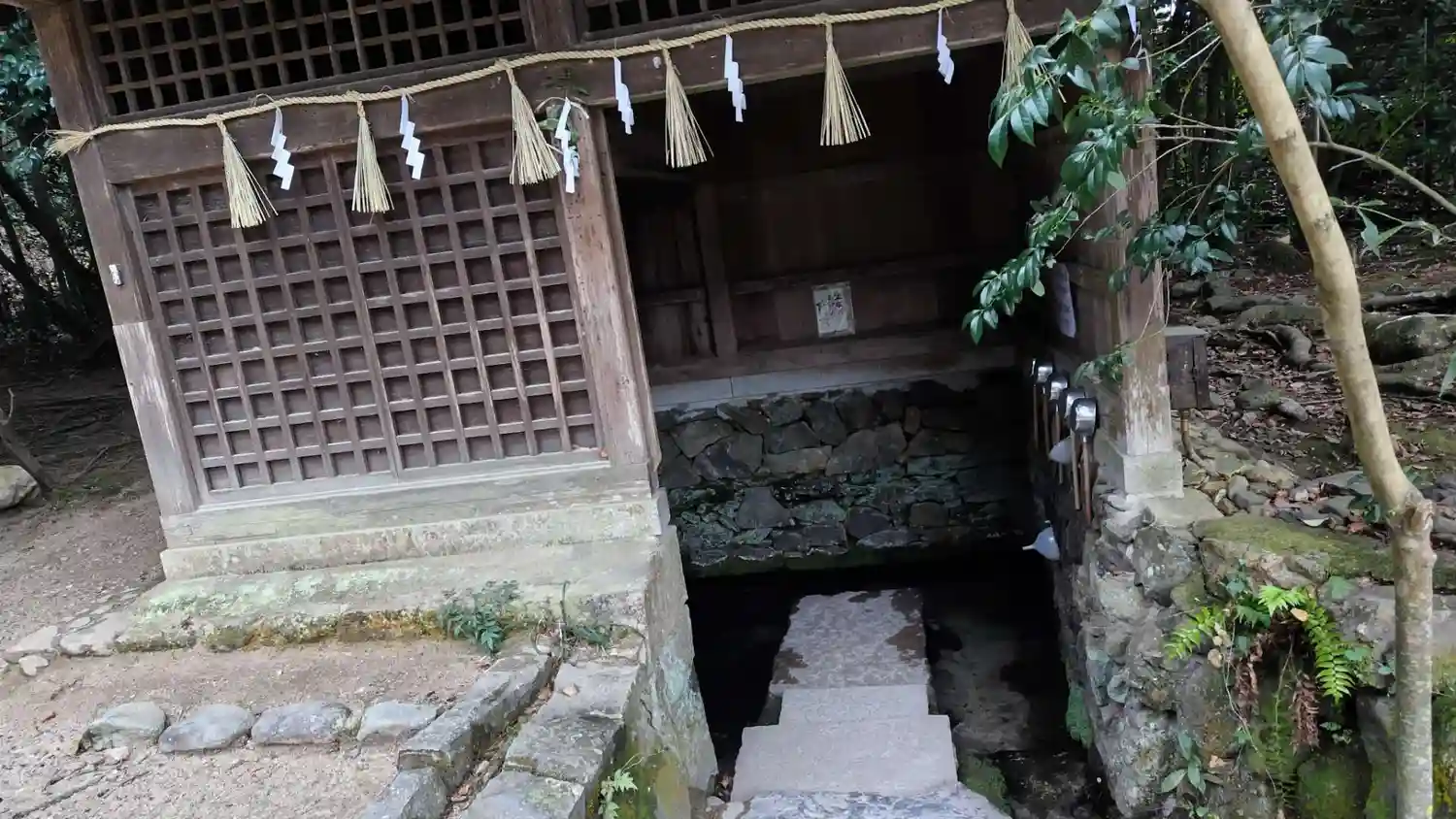 屋根の下に井戸があります。