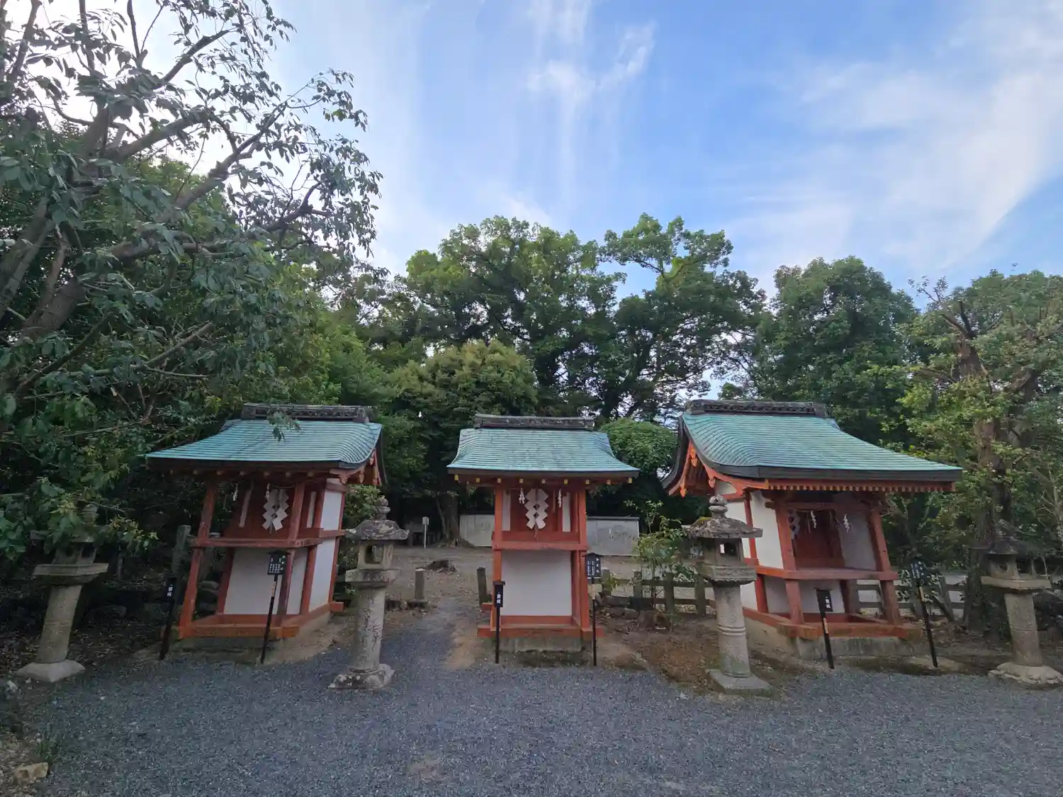 摂末社 右から春日神社、日吉神社、住吉神社