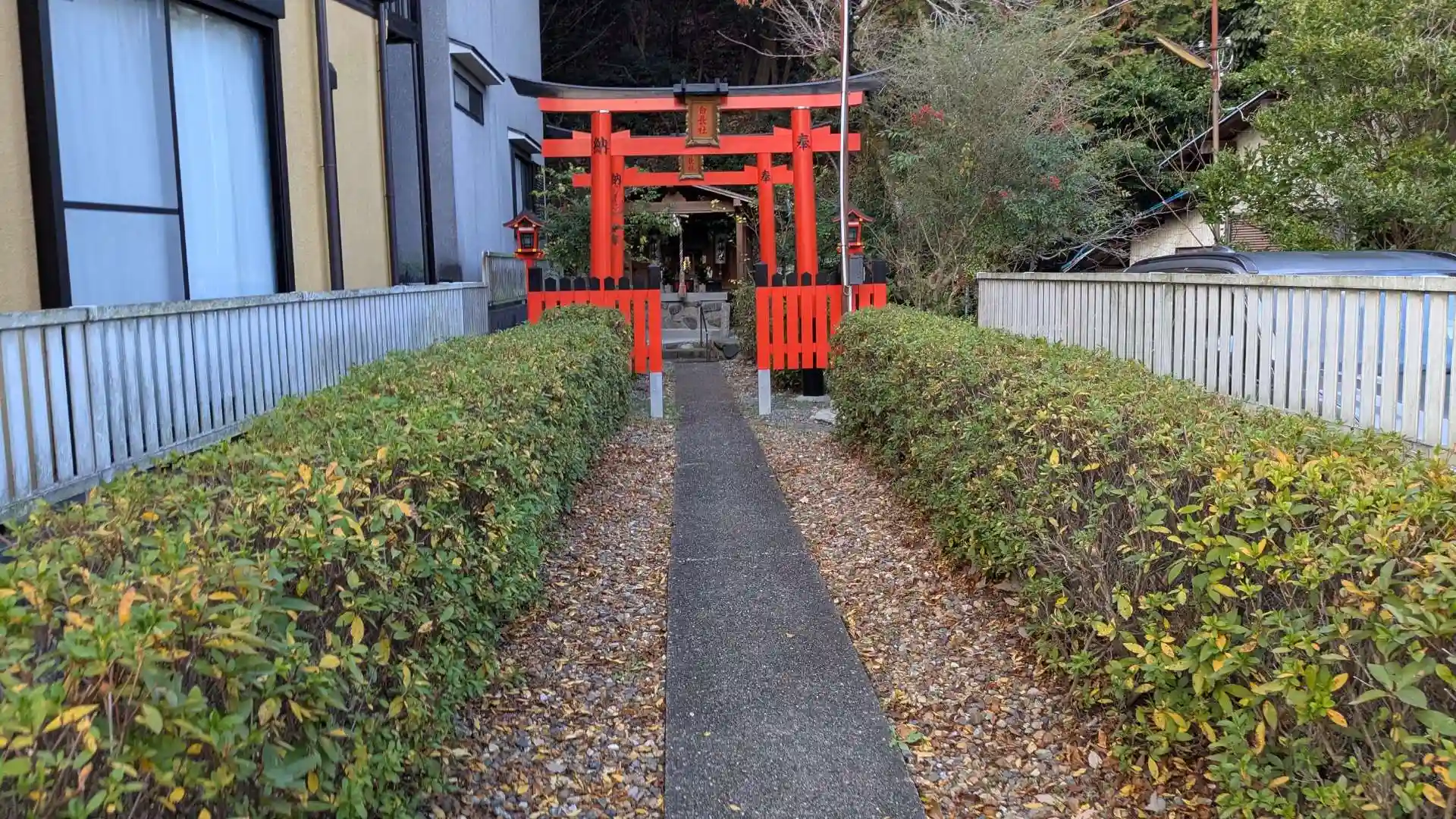 宇治市文化センターへ行く途中に赤い鳥居がありました。住宅の間の参道の先にある森の中にお稲荷様の社殿。しかもそれだけではありません。たくさんのお地蔵様やお不動様、神様の石碑など森の中には色んな神仏が祀られていました。住宅街の奥に隠れるような自然の中の神秘的な空間でした。