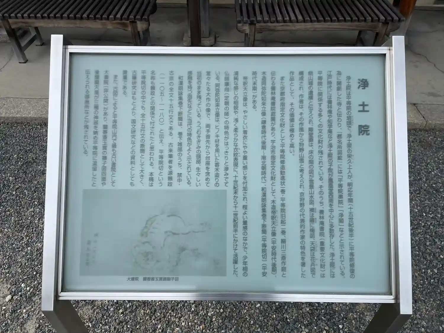 京都府宇治市にある平等院の二つの塔頭のひとつで、浄土宗の栄久上人が平等院の修復のために明応年間(1492〜1501)に創建した。