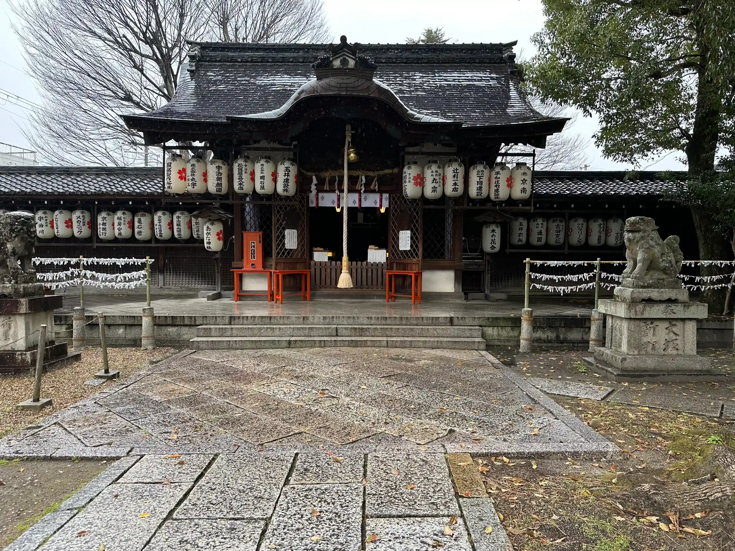 永承7年(西暦1052年)、藤原頼道の平等院建立にあたり総鎮守となり、平等院の地主神として祀られています。平安時代、平等院建立以前では藤原道綱の母が宇治に来た時、『蜻蛉かげろう日記』に「あがたの院」に詣でたことを記しています。
