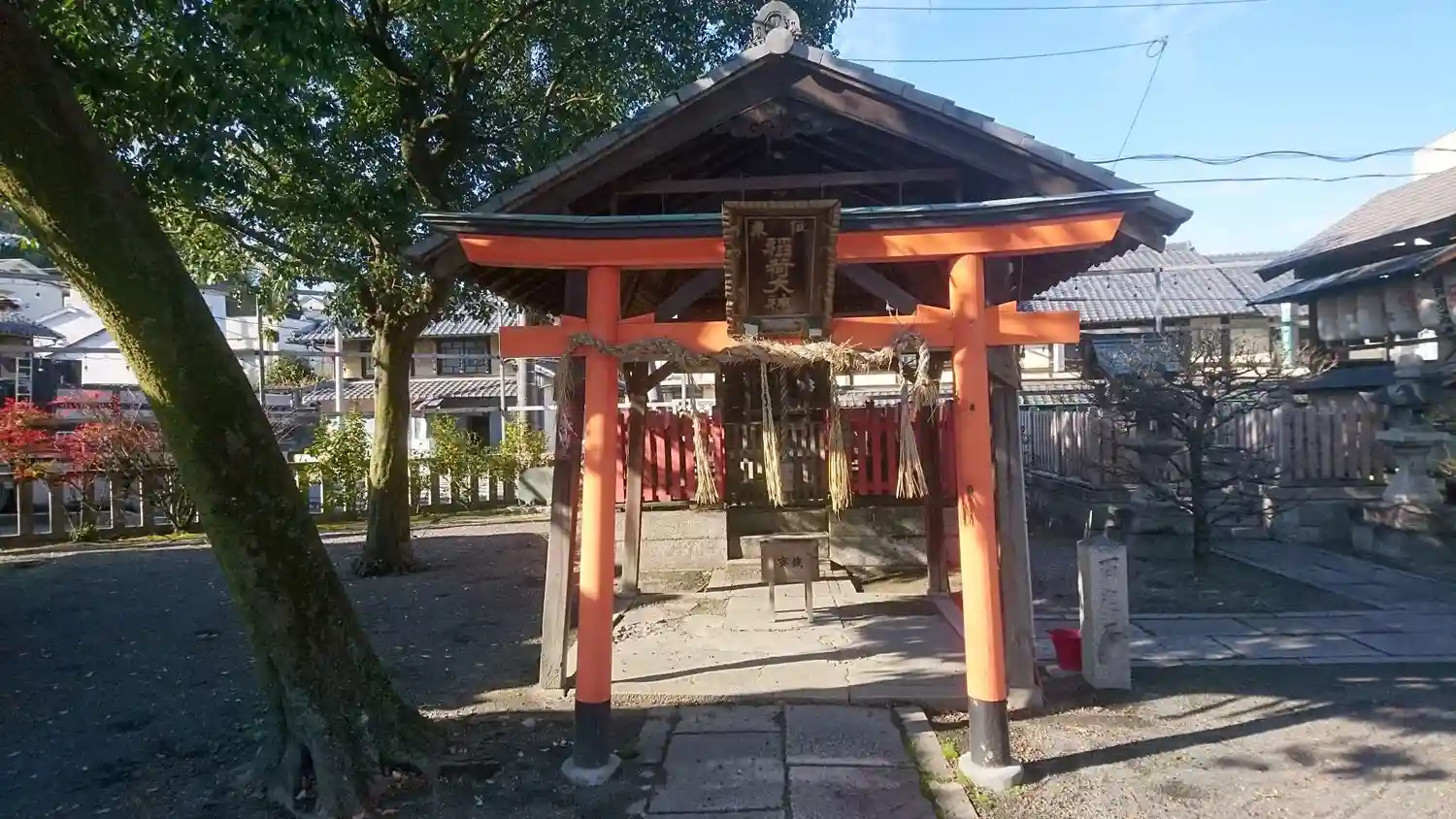 手水舎ちかくにある<稲荷社>。扁額には<東位 稲荷大神>の文字。